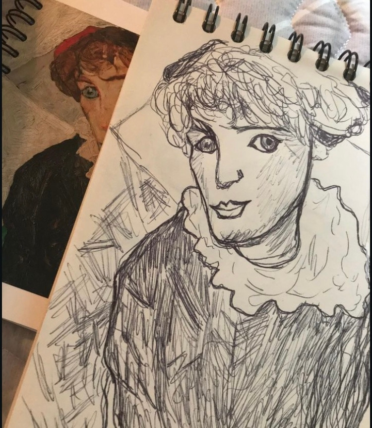 프랑스에서 유학을 하던 친구가 에곤쉴레를 좋아하는 나를 위해 사다 준 수첩에 있던 그림이었다.