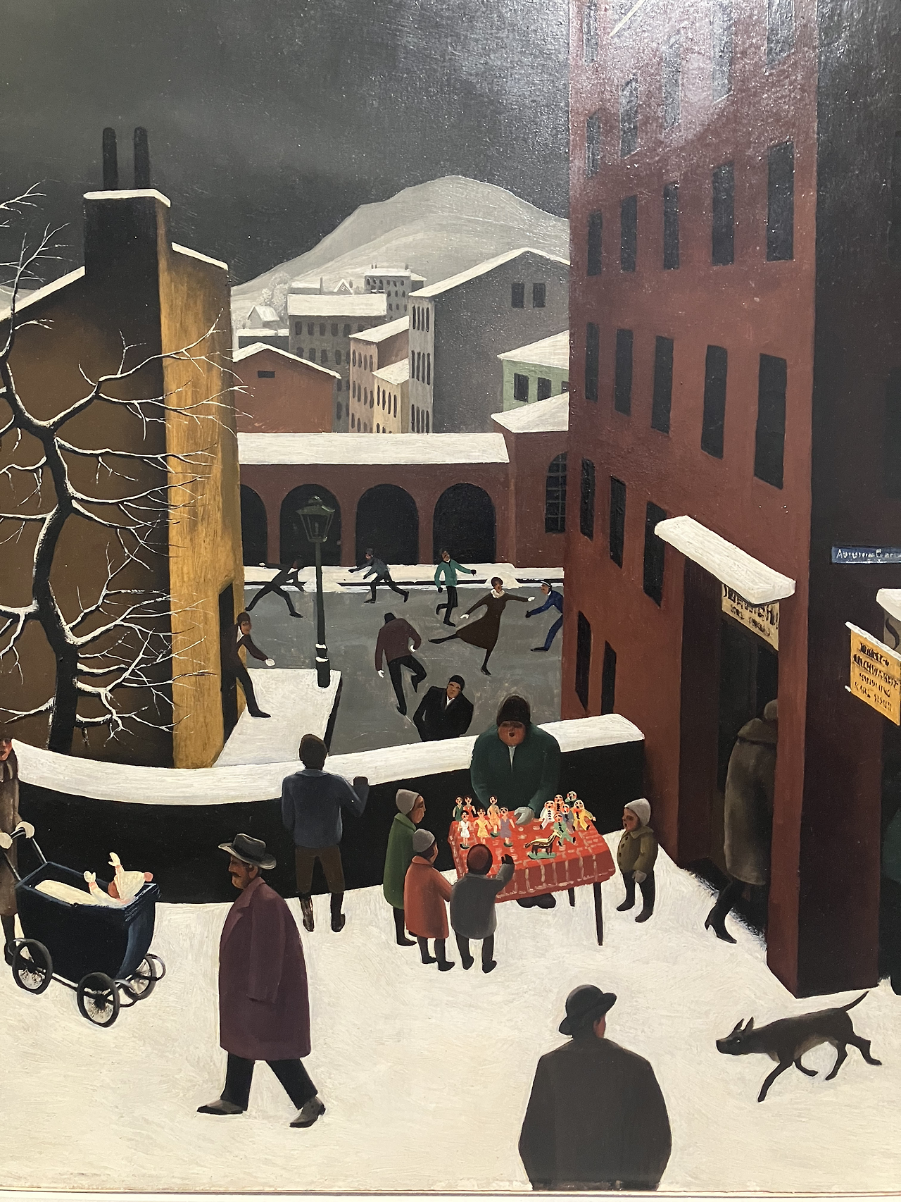 스케이트를 타는 연인들과 유모차를 끄는 여인, 장난감을 보며 신난 아이들까지 다채로운 겨울 풍경.