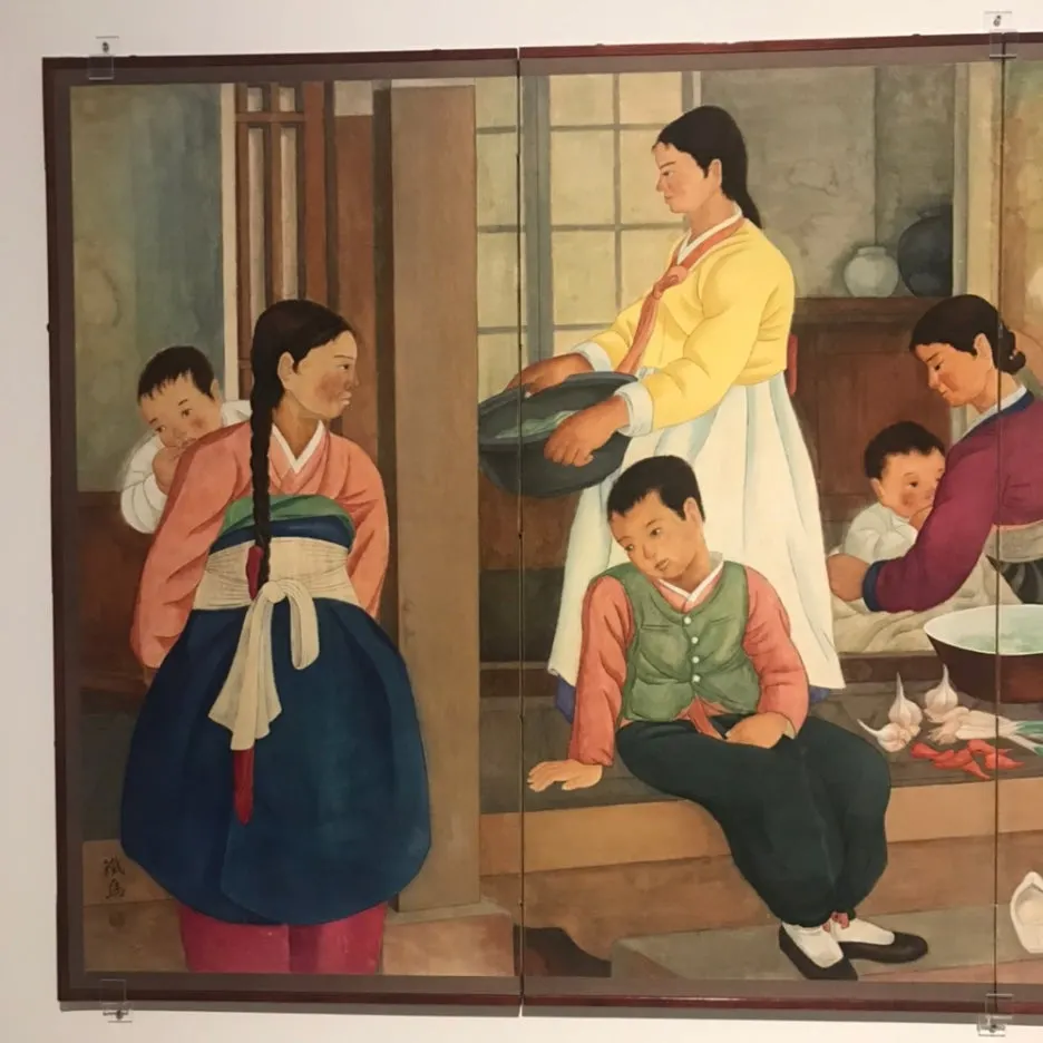 작가 김중현은 이 <춘양>을 통해 제 15회 조선미술전람회에서 동양화부 특선을 차지했다. 서민들의 풍속과 일상을 사실적으로 묘사하고 강렬한 색채로 표현하여, 작가의 서양화 '무녀도'와 함께 대표 수묵채색화로 꼽히는 작품이다. 복원 당시 네 동강이 나 있을 만큼 낡았었으나 선명한 컬러가 살아 있어 무사히 복원할 수 있었다고 한다. 지금 봐도 이렇게나 색감이 뚜렷한데, 당시 사람들의 눈에 얼마나 다채롭고 화려한 그림으로 보였을지.