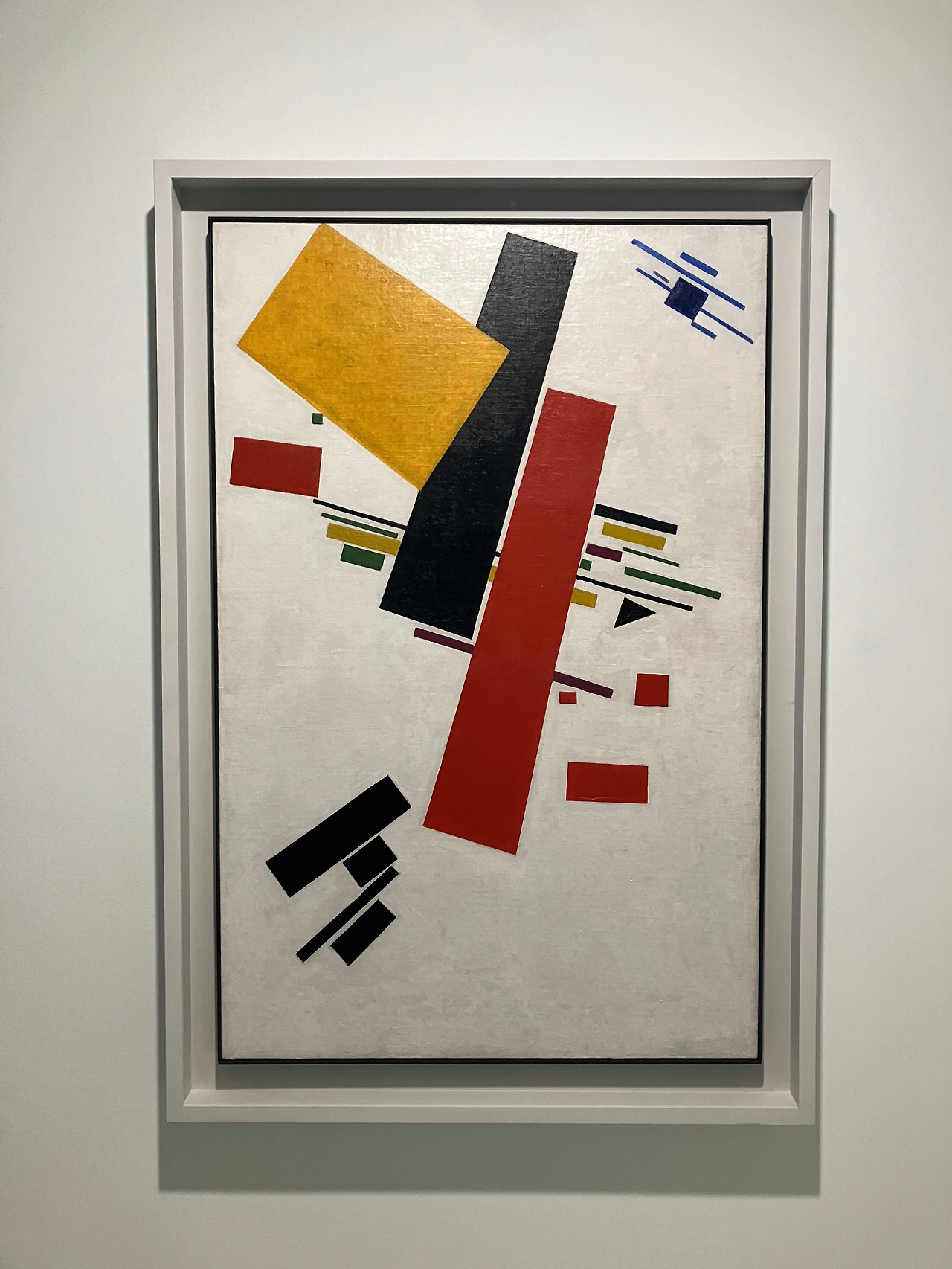 그림을 보고 있는 것만으로도 역동적인 음악이 느껴져서 한참을 보고 있던 작품. 순수한 감각을 표현하고자 한 말레비치의 의도가 성공한 게 아닐까.