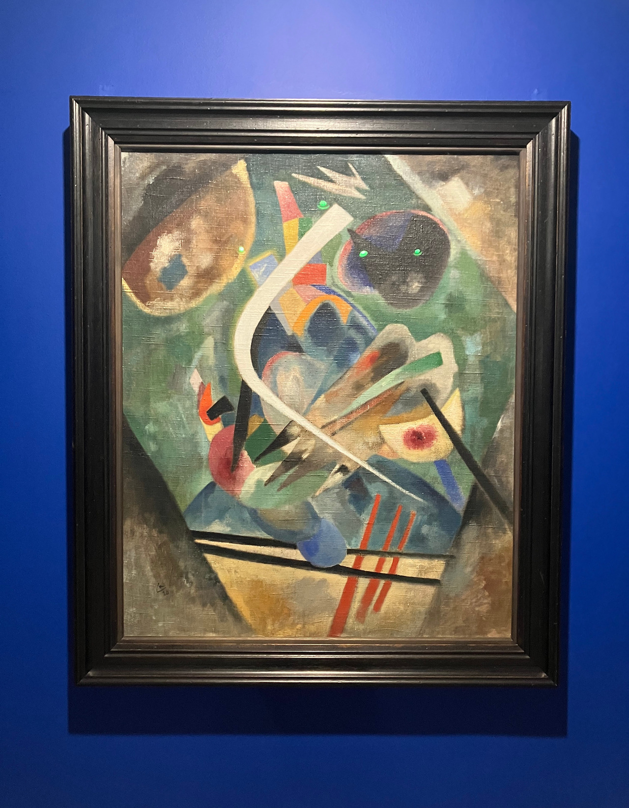 청기사파는 색채에 상징적인 의미를 부여하여 낭만성을 드러내고자 했다. 특히 칸딘스키에게 청색이란 물질주의에 대항하는 정신성을 상징한다. 다양한 색상 위에 흰 붓자국을 한 획 얹은 작품, 칸딘스키에게 흰색은 어떤 의미였을까?