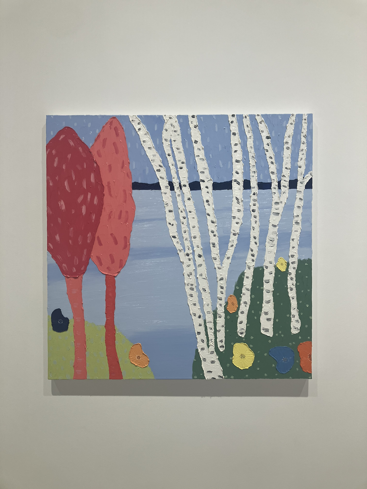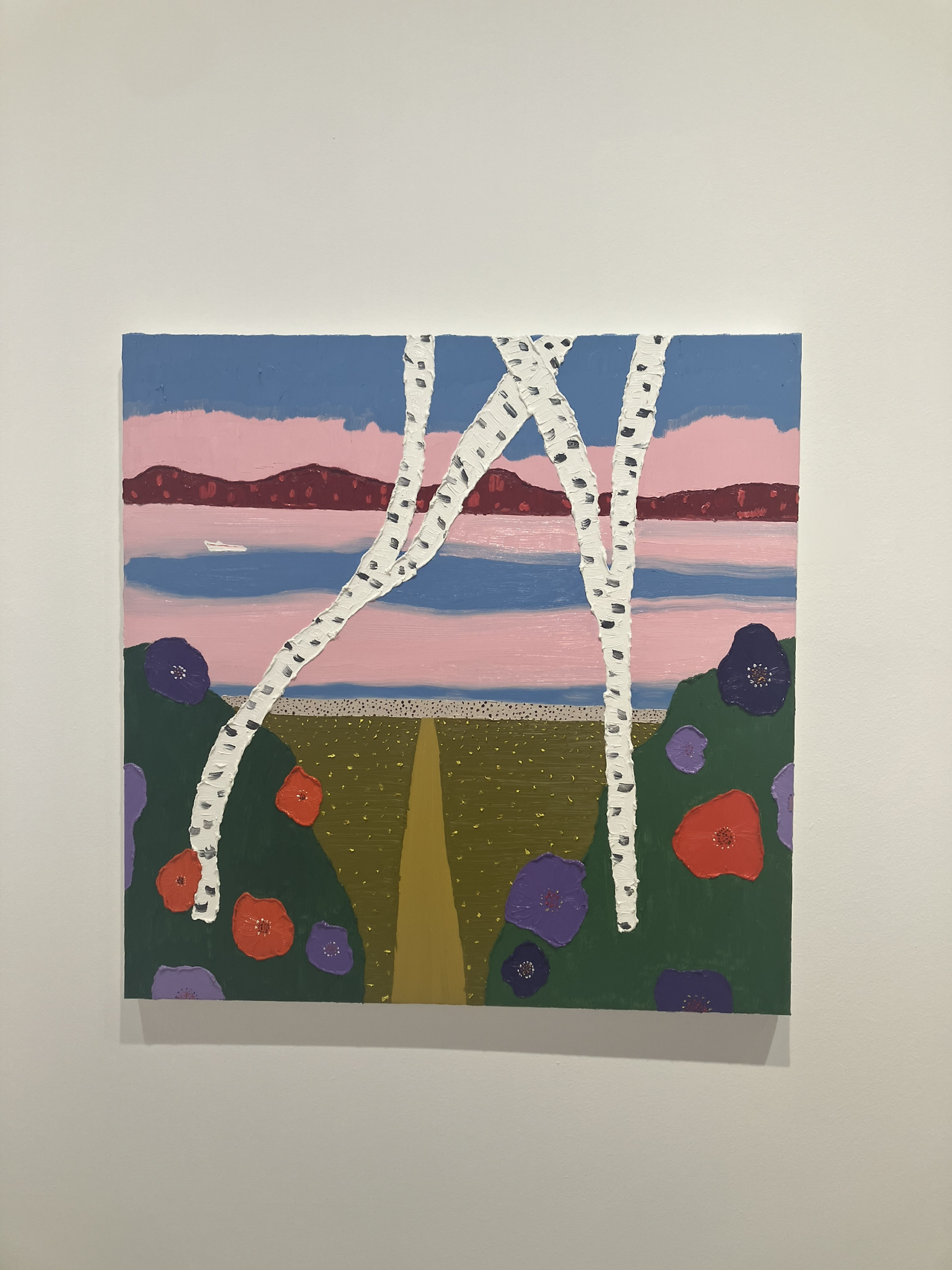 지난 40년간 애디론댁(Adirondacks) 지역에서 거주하고 작업해 온 고스에게, 인근 챔플레인 호(Lake Champlain)에서 보트를 띄우거나 집 앞 정원을 가꾸는 일은 캔버스 위에 오일을 바르는 과정 못지않게 중요한 예술적 실천이다. 그는 충분한 시간을 들여 야외를 관찰하고 그 풍경을 온전히 흡수한 후에야, 비로소 머릿속에 형상과 감정, 색채가 나타나고 그것을 물감으로 옮겨 담는다. 주변 초원에 피어 있는 백일홍(zinnia)의 꽃잎 하나하나나, 풀잎 한 가닥 한 가닥을 사실적으로 재현하는 대신, 그는 ‘자세히 들여다본 경험’을 그릴뿐이지, ‘자세히 들여다본 대상 자체’를 있는 그대로 묘사하려 애쓰지는 않는다.