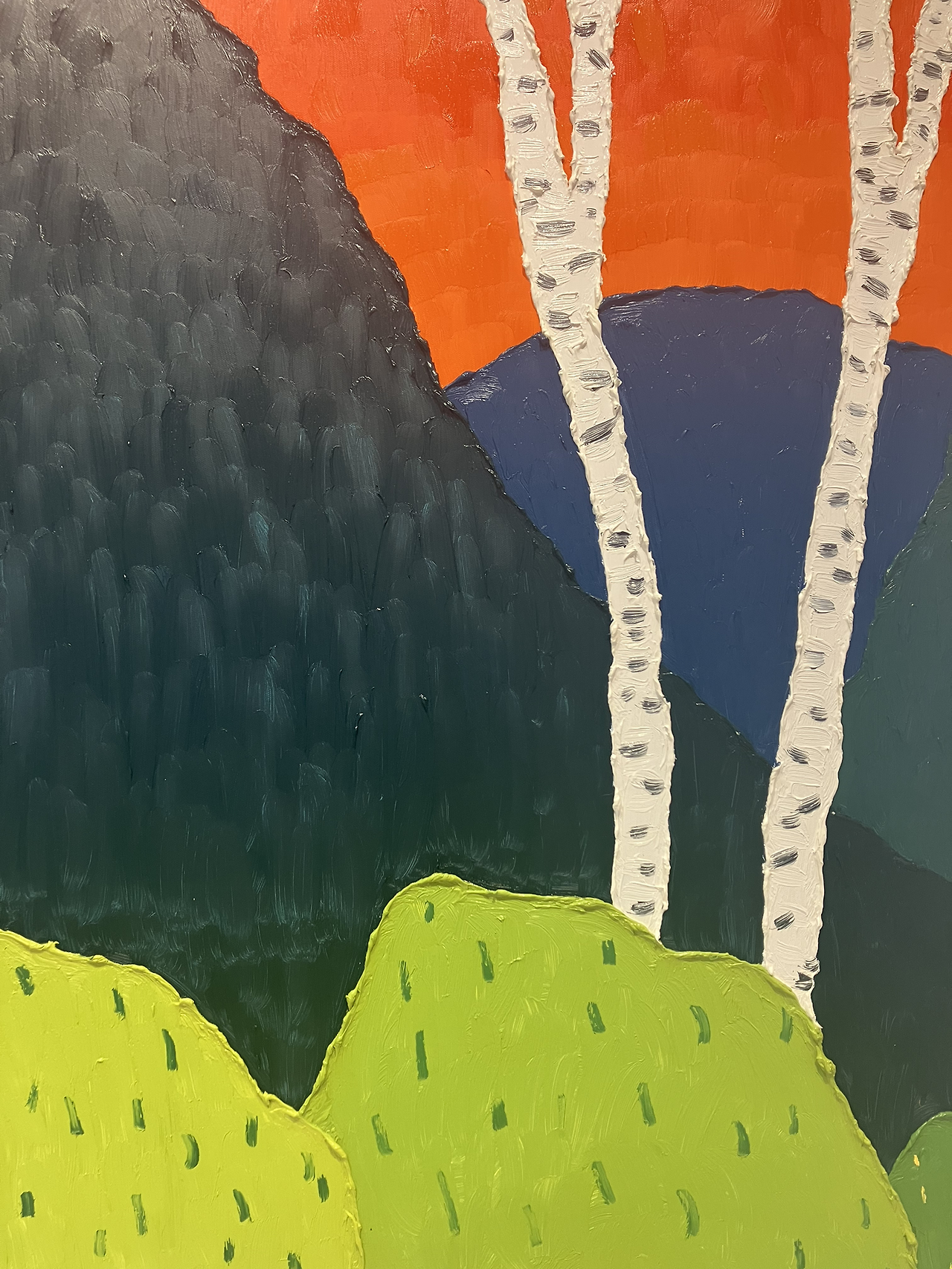 자작나무들은 유화물감으로 마치 조각하듯 거칠게