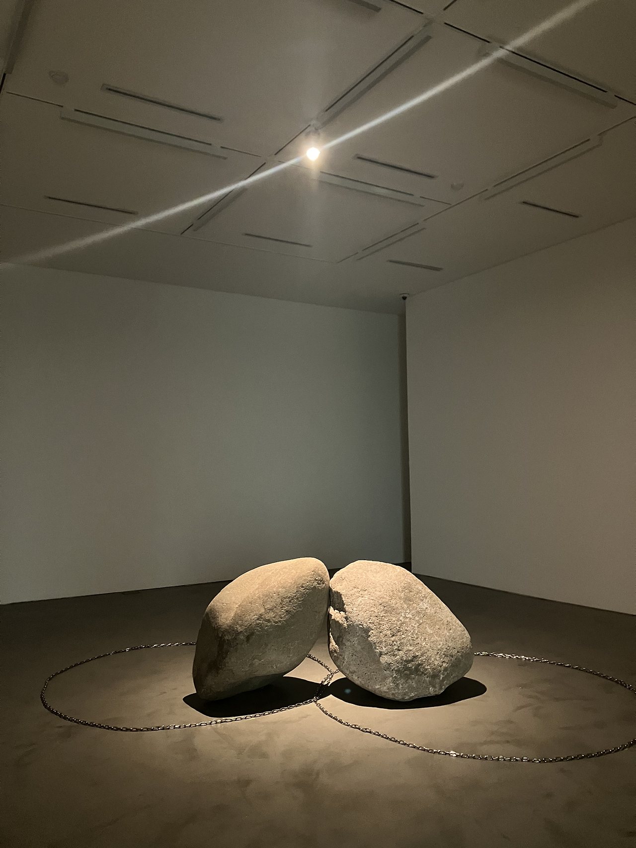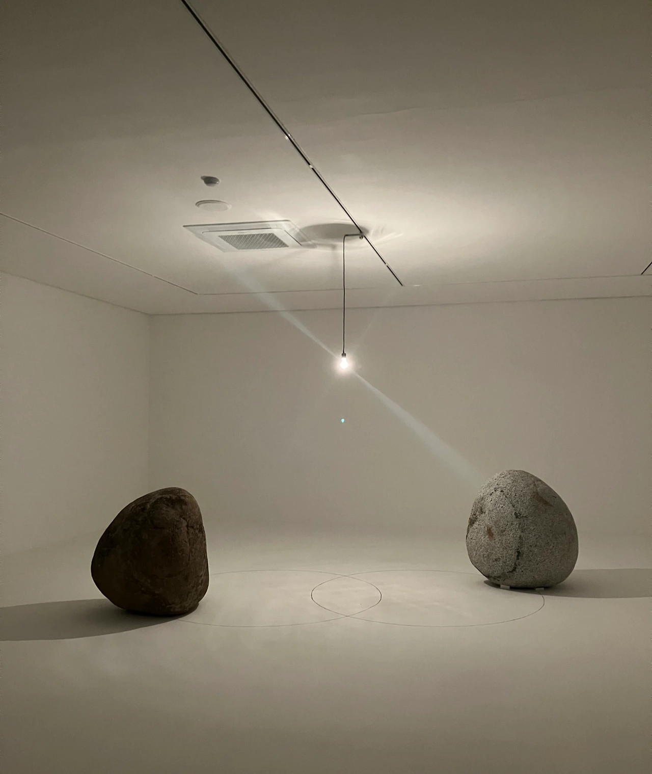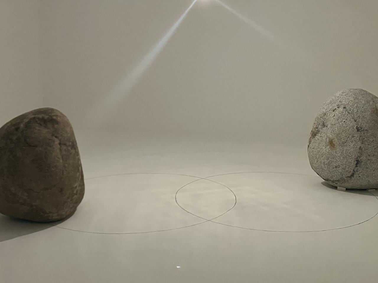 가볍고 명랑한 원반들의 맞은편에 묵직하고 미동 없는 돌을 위치시킨 것이 재밌기도 했다. 여러 가지 해석을 자아냈던 작품.