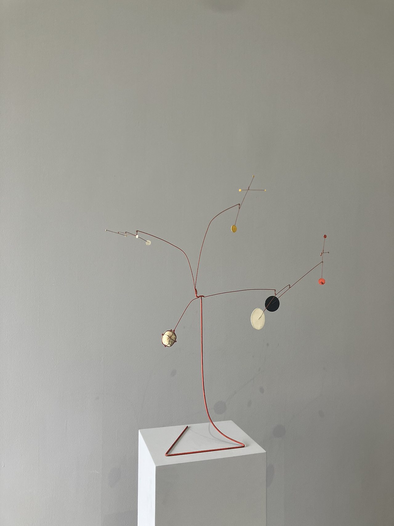 공중에 매달려 공기의 진동에 의해 움직이는 칼더의 작품에 '모빌'이라 이름 붙인 건 바로 마르셀 뒤샹이었다. 칼더는 뒤샹과 동시대에 활동하면서 당대 유럽의 모더니즘과 미국의 신생 아방가르드 흐름을 연결하는 주요한 가교 역할을 했다. (도록 발췌 및 첨언)