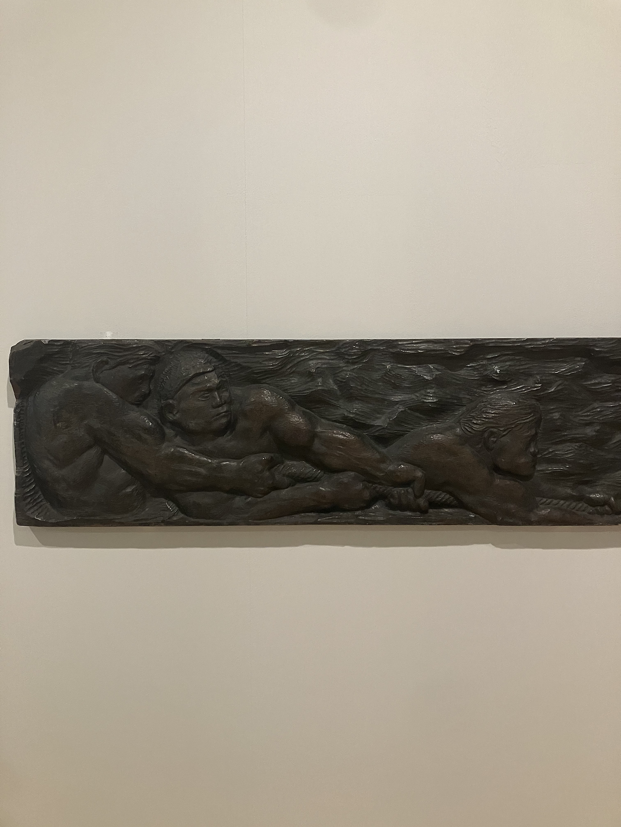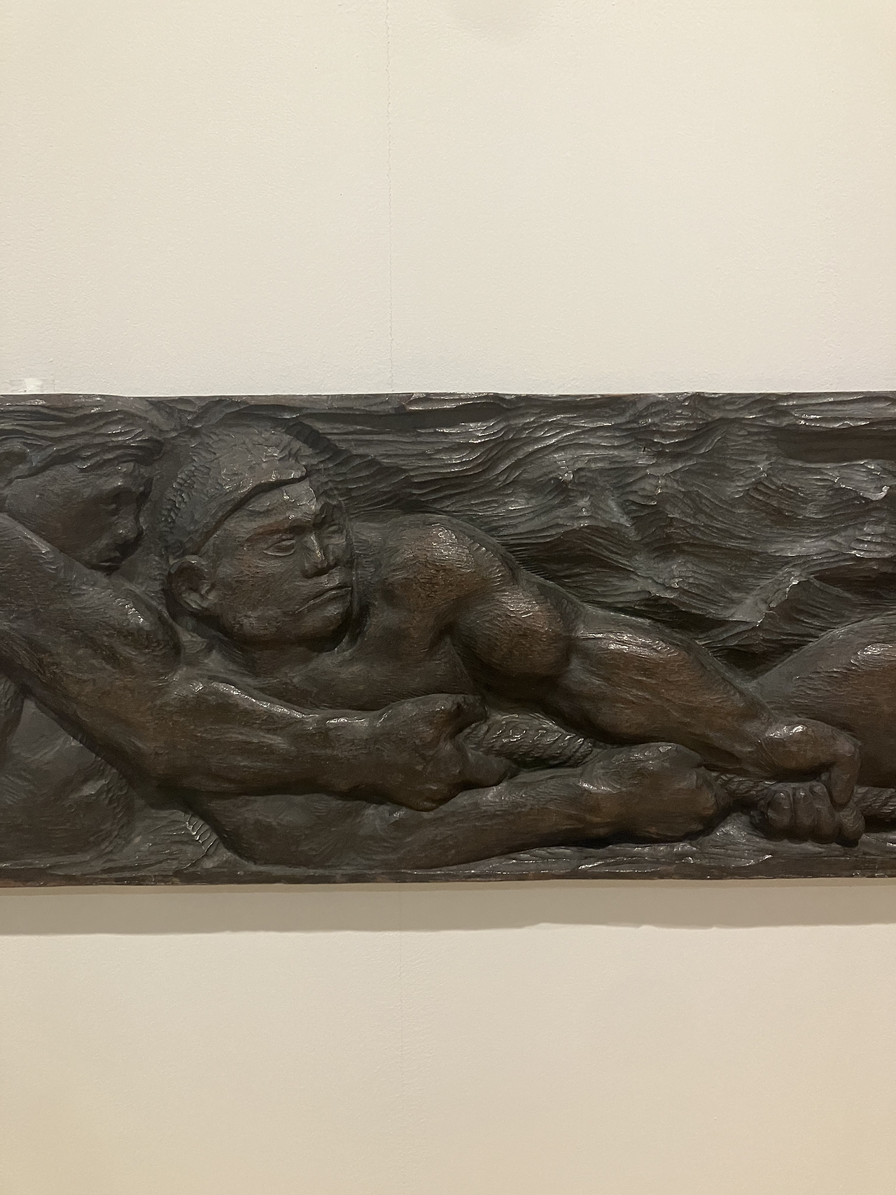 노동의 한가운데에 있는 어부의 강인함과 집중력이 표정과 근육의 표현에서 느껴진다.