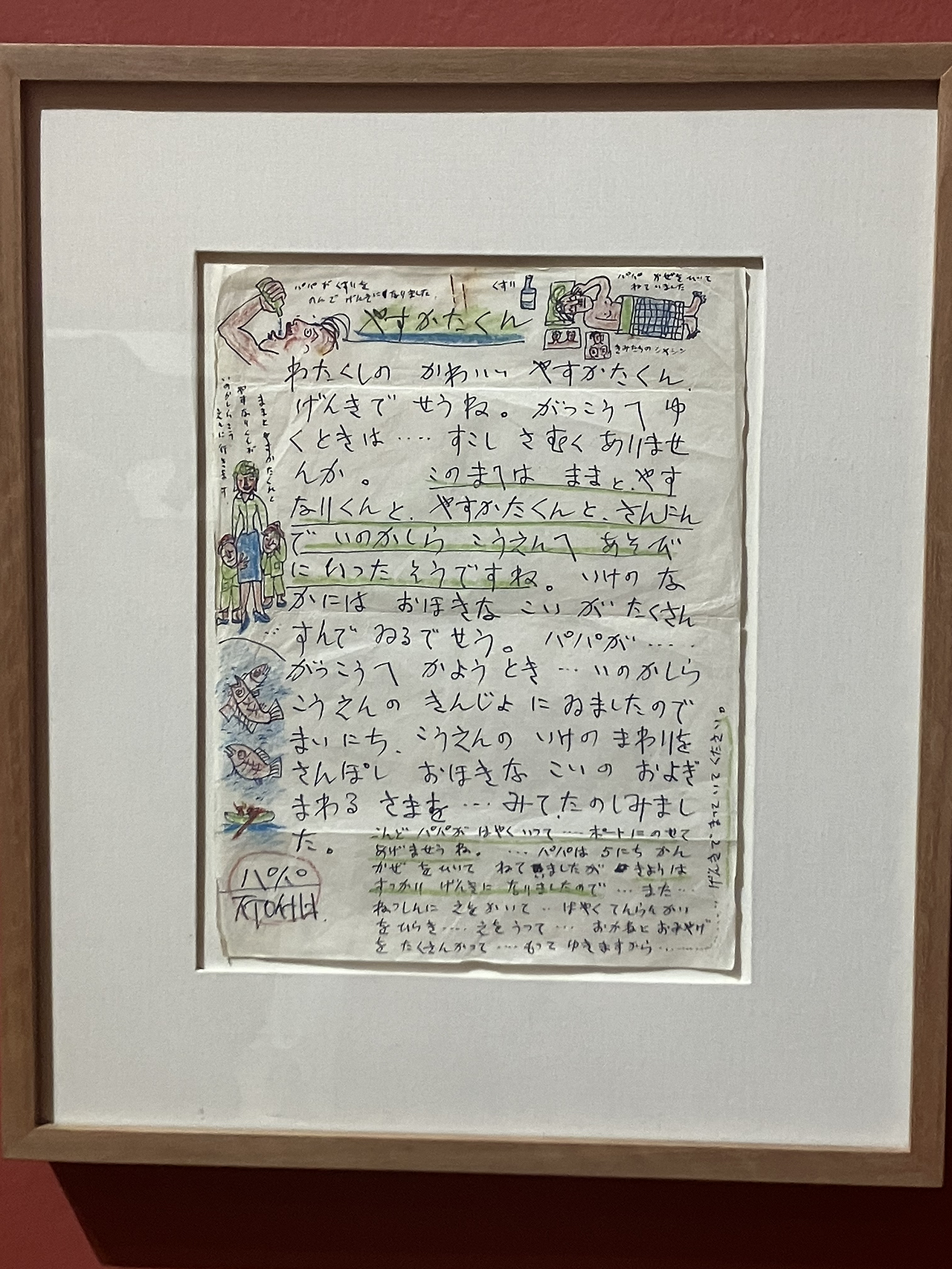 이와 함께 너무나도 귀여웠던 아들에게 부친 편지. 여백마다 글이나 당시 상황에 대한 그림을 그린 게 어찌나 다정하고 앙증맞던지. 예술가로서의 본성과 아들을 향한 따뜻한 마음과 함께 느껴졌다.