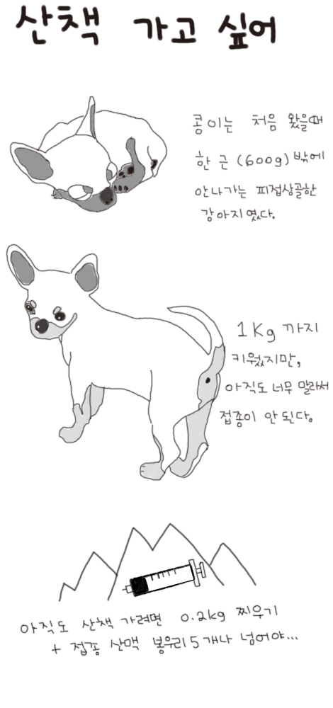 그런데 선생님. 2주에 한 번씩 5번 주사 더 맞으려면 두 달은 산책 더 못 가는 거네요...