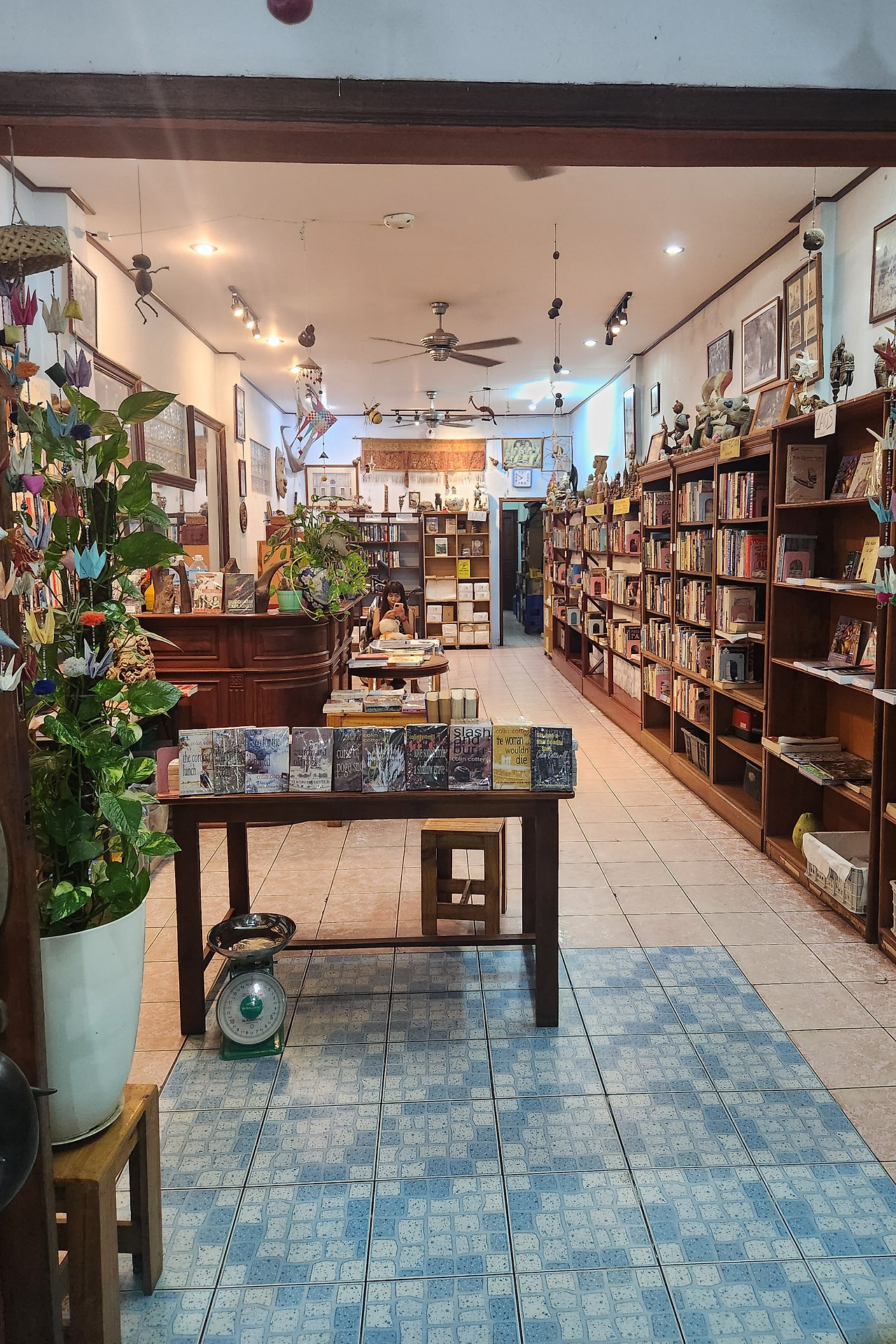 식사를 마치고 도가니국수 가게 맞은편에 있는 서점을 구경했다. 라오스 여행, 라오스의 역사와 관련된 로컬 서적과 라오스를 찾은 여행자가 떠나기 전 남긴 듯한 영어, 프랑스어, 독일어 등으로 쓰인 중고외서가 대부분이었다. 한국어로 쓰인 책이나 내가 읽을 수 있는 책은 없어서 그저 둘러보기만 했다.