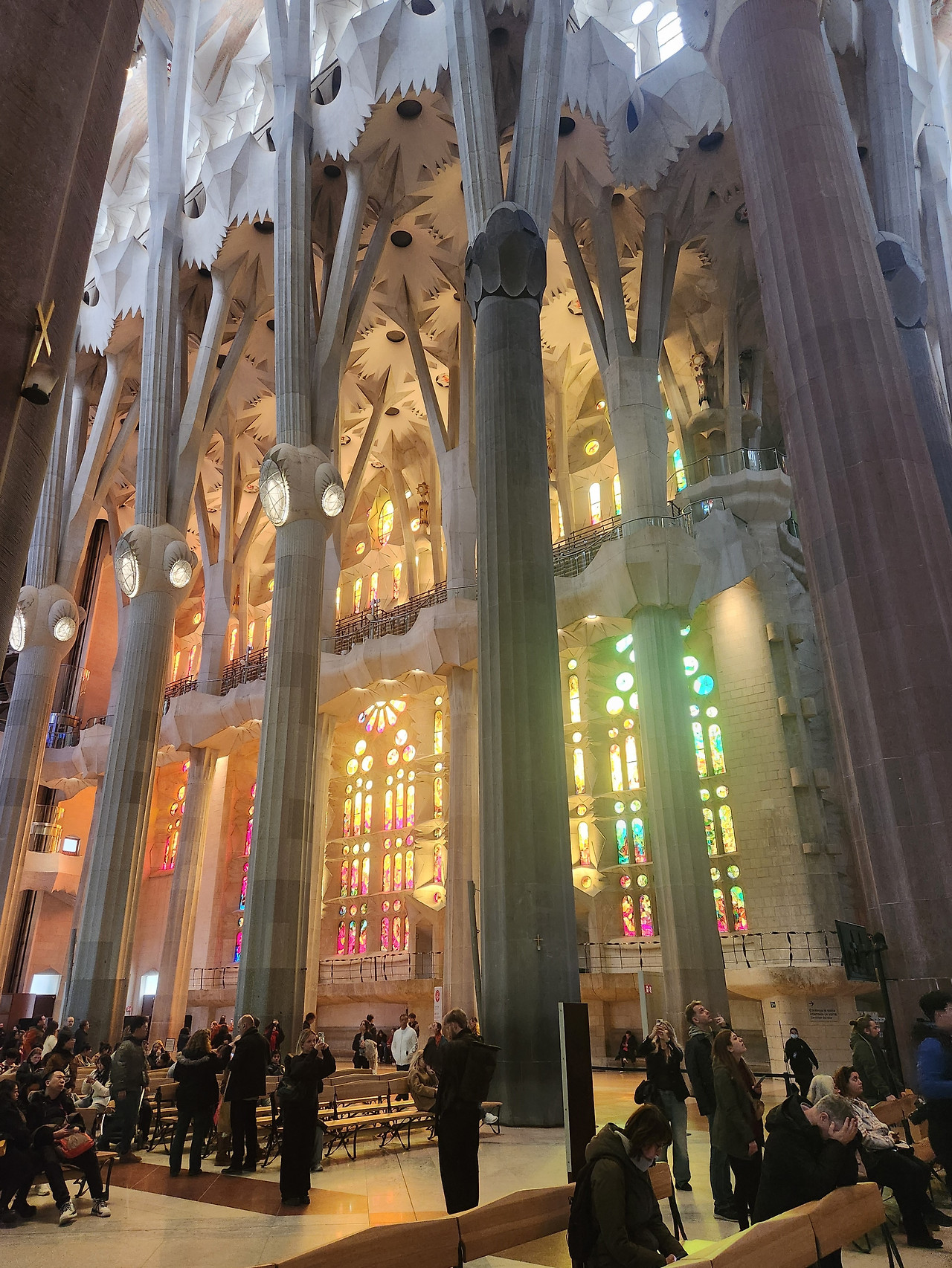 내부로 들어가는 순간 시작되는 빛의 향연이 외부세계의 소란스러움을 단절시켰다. 이게 진정 사람이 지은 건축인가 싶게 충격을 받아 입을 헤벌리고 두리번거렸다. 나무 기둥과 가지 모양의 기둥들이 천장을 향해 뻗어 있고 기둥이 숲을 이루고 색색의 스테인드글라스를 통해 쏟아져 내리는 빛이 이곳을 신이 머무는 숲에 들어온 것 같았다. 창에서 쏟아지는 빛은 방향에 따라 햇살을 담뿍 받은 나뭇잎이 반짝이는 생명력 있는 초록빛 같기도 하고, 지친 석양이 마지막 힘을 짜내 뿜어내는 아스라한 태양빛 같기도 하다. 가우디는 자연으로 건축을 했다. 나는 종교가 없지만 성경에서 말하는 신의 자연 창조를 이곳에서 이해하게 되었다. 성당에 들어서는 순간, 가우디는 나에게 신이었다.