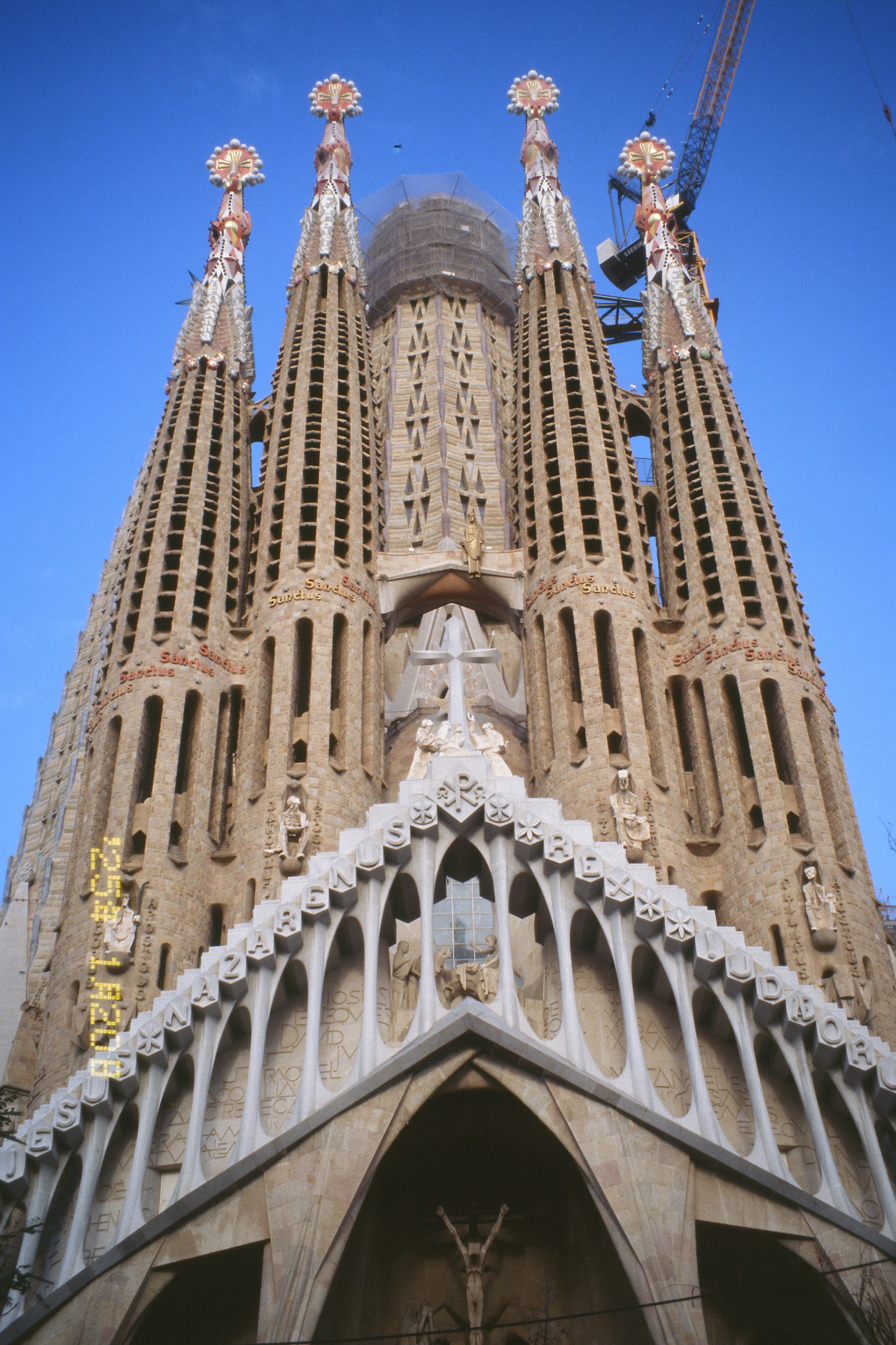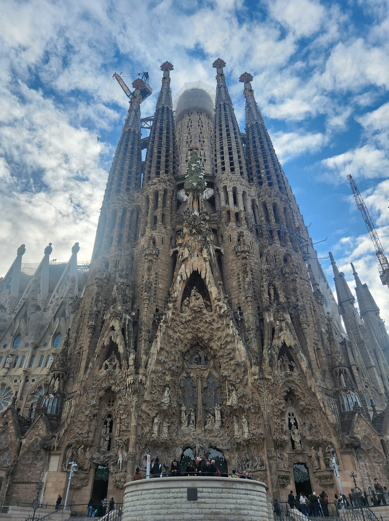 잔뜩 부른 배를 소화시킬 겸 바르셀로나 골목길을 구경하며 성당까지 천천히 걸어 내려왔다. sagrada família(사그라다 파밀리아) 성당은 한국어로 하면 성 가족 성당으로, 예수와 마리아, 요셉 3명의 성 가족에게 봉헌된 성당으로 가우디 생애 후반부를 바친 가우디의 유작이다. 이 성당을 건축하던 중 근처에서 교통사고로 세상을 떠나 미완의 작품으로 남았다. 현재 3개의 파사드(외벽) 중 영광의 파사드와 18개의 탑 중 예수탑을 짓는 공사가 아직 진행되고 있다. 가우디 서거 100주기를 기념하여 2026년에 완공하는 게 목표라고 한다. 미완의 약속을 지키기 위해 우리가 방문했을 때도 크레인 두 개가 높이까지 올라가 성당을 짓는 공사를 하고 있었다. 비록 가우디는 없지만 가우디의 설계대로 건축을 하고 있는 모습을 본다는 것만으로도 감회가 새로웠다.