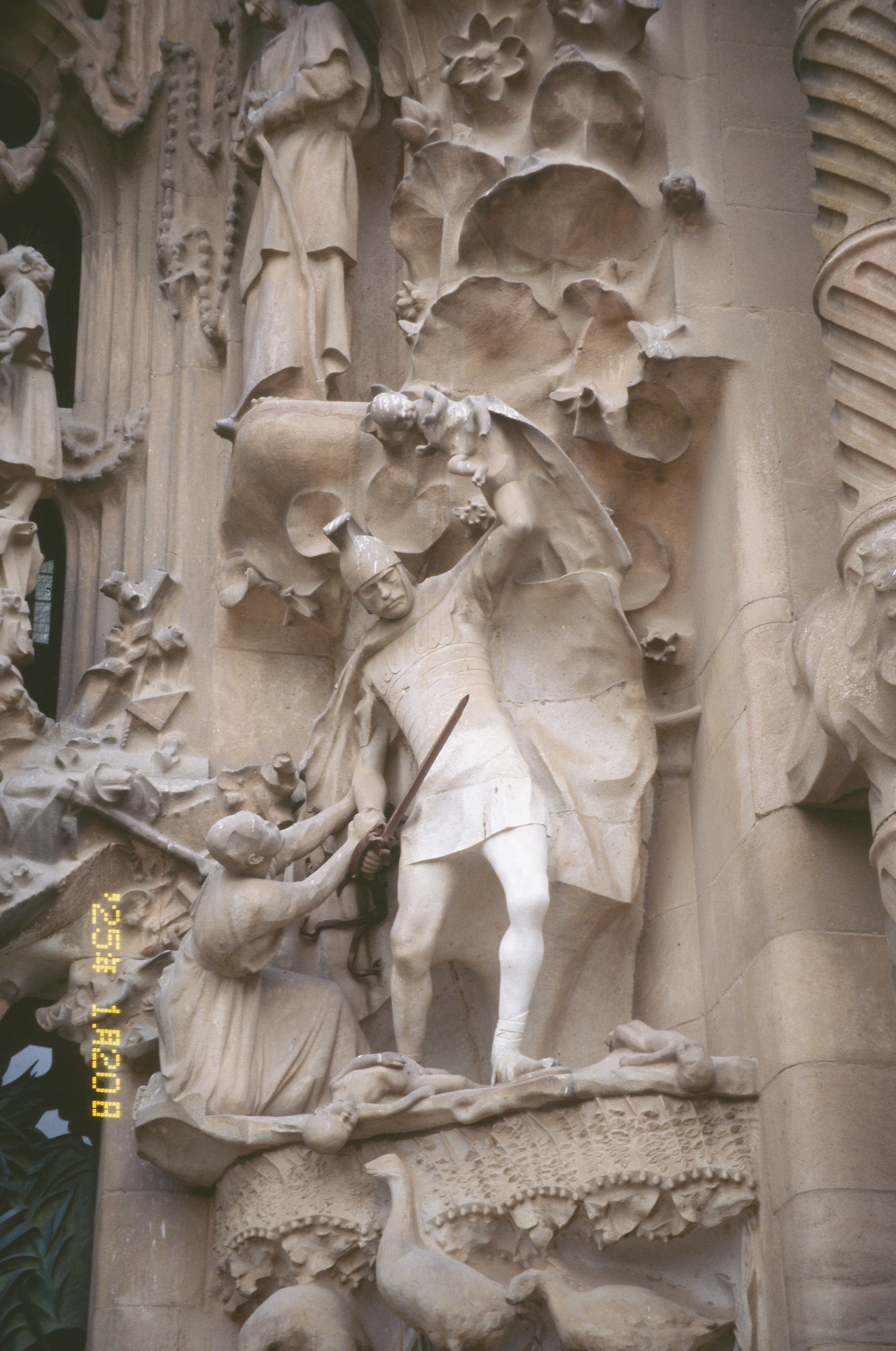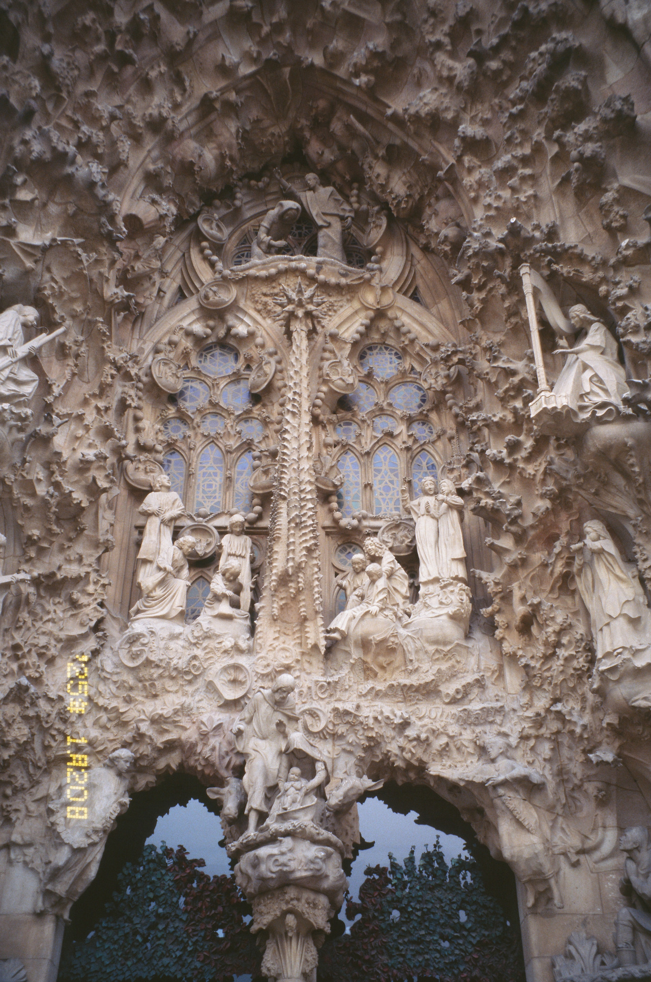 빛의 숲에서 나와 외벽을 둘러보았다. 파사드는 돌로 쓴, 조각으로 그린 성경 그 자체였다. 성경 내용을 잘 모르다 보니 오디오 가이드를 들어도 감흥은 크게 없었지만 그 규모와 세밀함에는 정말 혀를 내둘렀다. 심지어 가우디 사후 파사드 조각을 맡은 조각가는 사실적인 표현을 위해 실제 사람의 본을 떠 조각을 했다고 하는데, 아래 두 번째 사진의 파사드는 죽은 신생아의 얼굴을 본떠 새겼다는 사실이 충격적이었다. 이 조각이 죽음과 예술의 경계에 대해 묻게 했다.