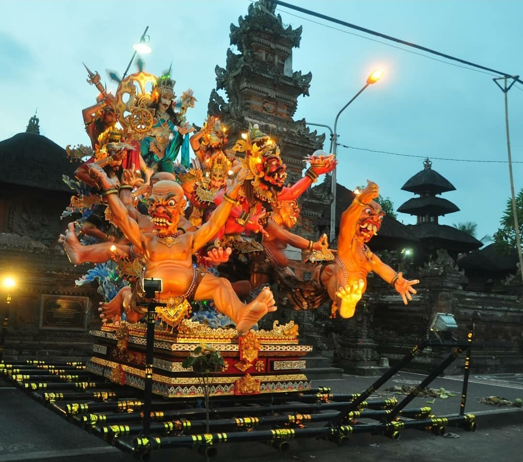 힌두교 발리 지역에서 사용하는 달력 ‘사카(Saka)’에 따라 우리가 있던 그 해는 '3월 30일'이 일 년의 마지막 날이었다. 새해 하루 전 날 밤, 우리는 하얀 전통 옷을 입고 격식을 차린 그루들과(발리에서는 선생님을 '그루'라고 부른다) 그 가족들과 함께 거리로 나갔다. 뭉구 마을 사람 모두가 흰 의복을 차려입고 불이 활활 타오르는 횃불을 들고서 가지각색 모양을 한 수십수백 개의 ‘오고 오고’를 따라 퍼레이드 행렬에 따라나섰다. 사람들을 따르는 수레 중에는 인도네시아 전통악기인 ‘가믈란’도 있었는데 '딩동댕동 딩딩동댕동' 소리를 내며 연주해주는 연주자들 덕택에 마을 전체가 시끌시끌하고 소란스러운, 화려한 밤을 보낼 수 있었다.