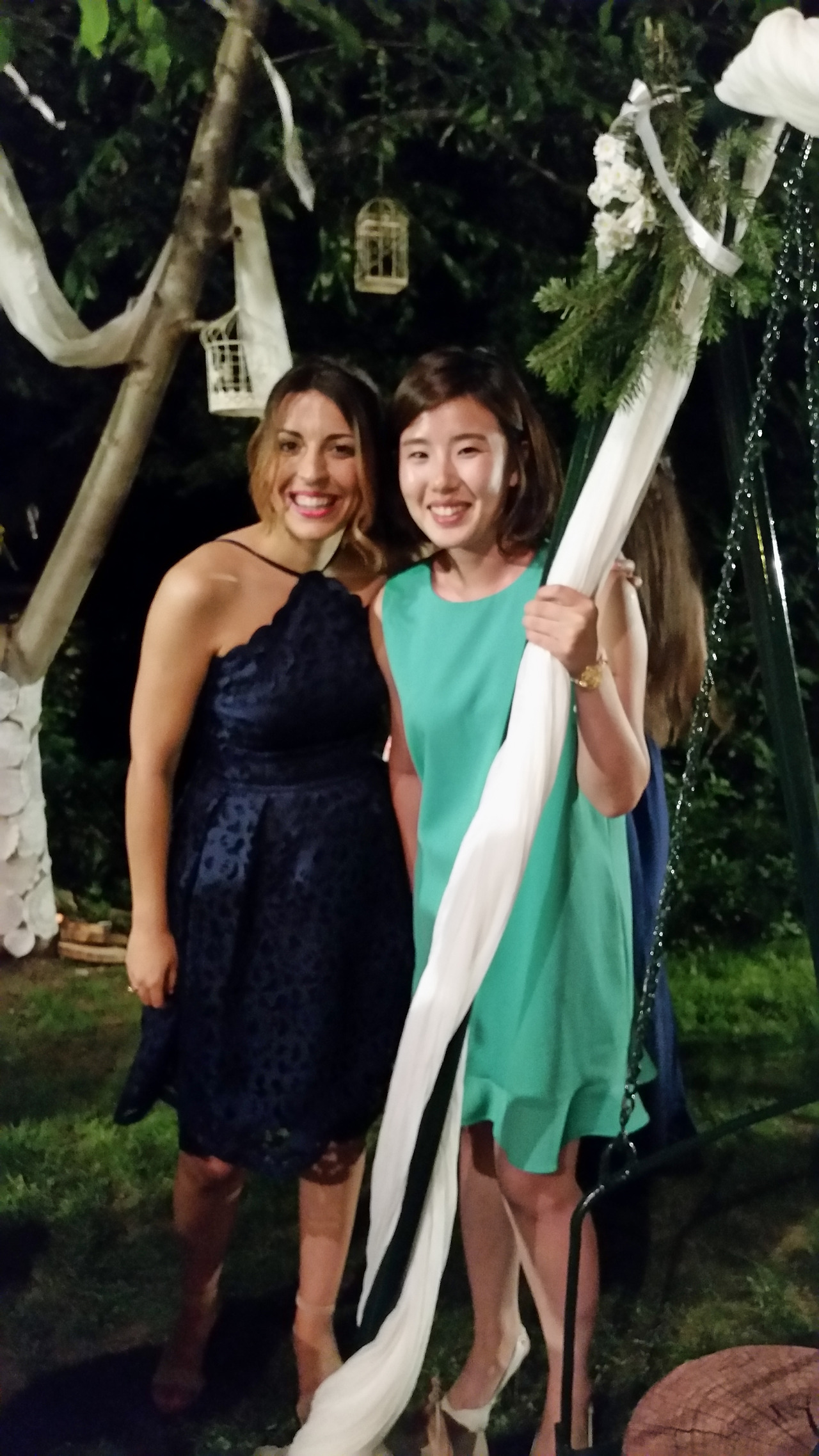 드디어 그리스인 친구, 이 곳으로 우리를 초대한 엘리자베스를 만난게 아닌가! 풀 메이크업과 레이스 달린 드레스를 입은 엘리자가 우리를 반겼다. 자, 이쯤에서 반전을 말한다. 눈치채셨는가? 이 결혼식은 엘리자베스의 결혼식이 아니다. 바로, 그녀의 언니 '칼리타'의 결혼식. 그리스 또한 우리나라와 마찬가지로 하객 수를 어마어마하게 부른다고 한다. 사돈에 팔촌, 심지어 동생 친구들까지 결혼식에 부르는 정도이니 500-600명의 하객은 거뜬하다고 한다.