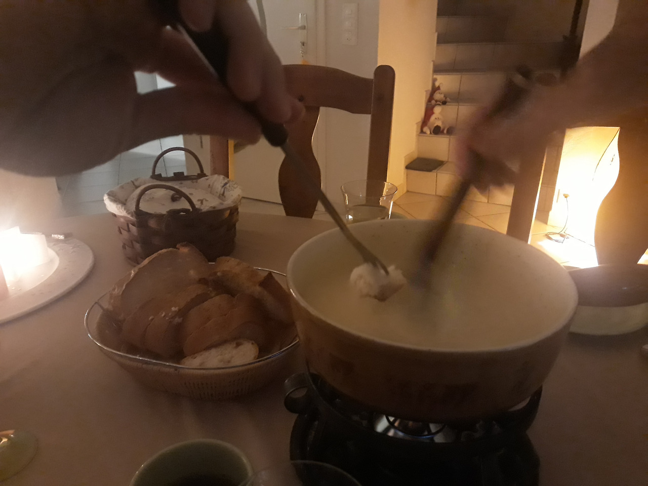 스위스 알프스 산맥을 넘나들던 사람들이 딱딱하게 굳은 치즈를 불에 녹여 빵을 찍어 먹는데서 유래했다고 전해져 오는 음식, 퐁듀(Fondue). 평소에는 한 입에 쏙 들어가는 작은 알 감자와 촉촉한 바게트를 에멘탈과 그뤼에르 치즈 그리고 화이트 와인, 마늘 등의 향신료를 섞은 치즈 퐁듀를 즐겨먹지만, 크리스마스에 초대받아 방문했던 이 날은 각종 야채를 넣고 만든 맑은 채수와 레드와인을 주재료로 끓인 팟(냄비)에 소고기를 익혀먹을 수 있는 특별한 퐁듀를 맛볼 수 있었다. 야채 국물에 소고기를 넣어 먹는 맛은 우리가 아는 바로 그 맛, 샤브샤브! 팔팔 끓는 레드와인에 살짝 익혀 먹는 고기는 적당한 산미가 느껴지는 아주 깔끔하고 담백한 맛!