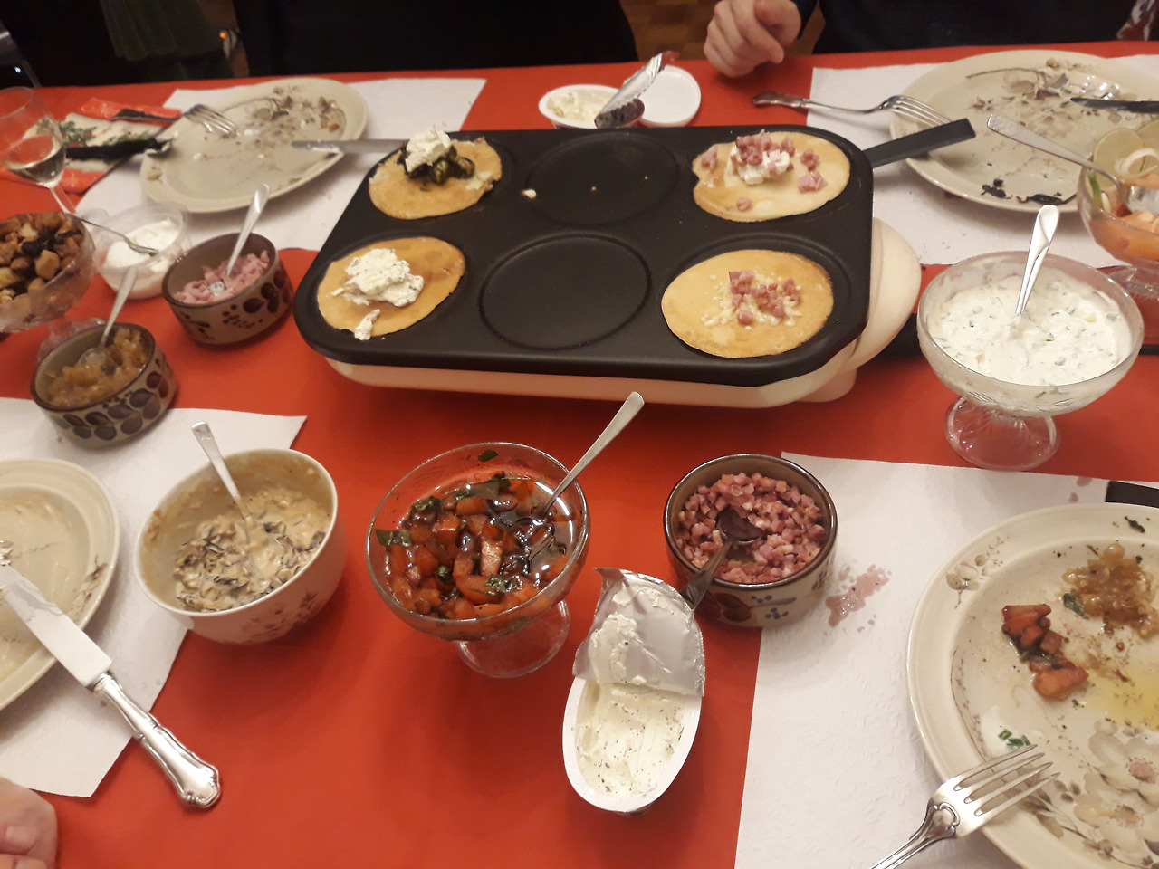 테이블 가운데 크레페 전용 팬을 올려두고 미리 만든 반죽에 버섯, 햄, 양파절임, 닭고기, 토마토 등등에 각종 치즈와 소스를 각자의 취향에 맞게 올려 먹는 식사용 크레페는 초코시럽과 바나나 등 달콤하게 먹는 'Sweet crepe'와는 다른 매력이 있다. 샌드위치 전문점 서브웨이의 고급 버전 같은 맛이랄까?