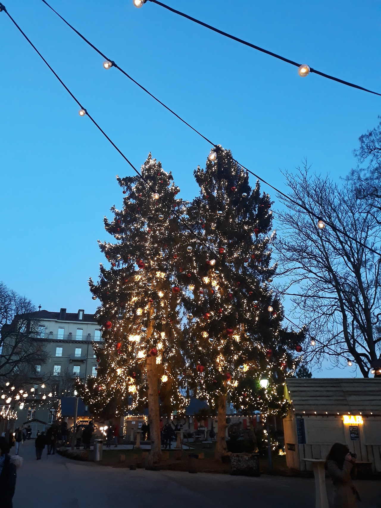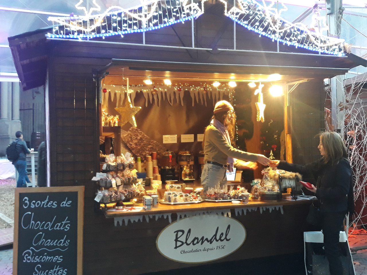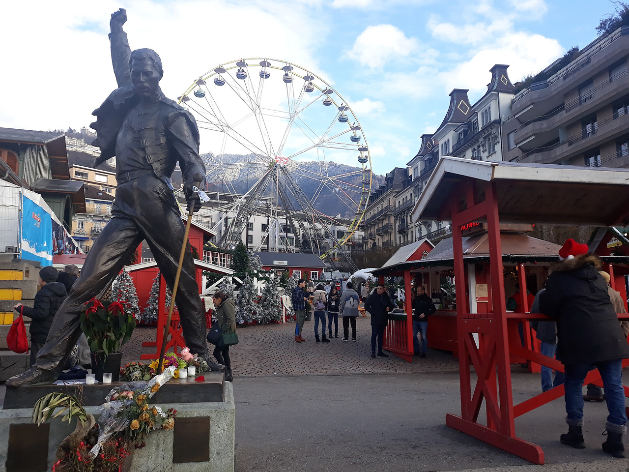 따듯한 와인 뱅쇼(Vin chaud)를 마시며 프레디 머큐리 동상 앞에서 매시간 정각 하늘에 나타나는 파파노엘이(산타크로스의 불어 발음) "Ho Ho Ho, Mery Christmas"를 외치며 캐럴 음악과 함께 나타나는 이벤트를 감상하면 크리스마스 분위기를 물씬 느낄 수 있다.