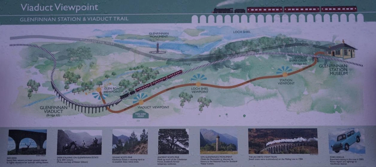 영국 스코틀랜드 '포트 윌리엄 (Fort William)'에서 마법학교 호그와트로 가는 기차, '호그와트 익스프레스'가 달렸던 다리를 보러 작은 산을 올랐다. <해리포터와 마법사의 돌>에서 해리가 친구 론과 함께 하늘색 자동차를 타고 하늘을 날아 호그와트 익스프레스를 따라가는 장면이 나온 곳이다. 사진을 찍으면 잘 나온다는 뷰포인트에 오르니 이 장소가 가지고 있는 특징들이 설명되어 있는 안내판이 눈에 띈다. 마지막 사진에는 2002년 자동차 포드가 이 지역에서 사라졌는데 혹시 사라진 자동차를 목격한 사람은 근처 역사에 알려주길 바란다는 유머까지 빠트리지 않았다.