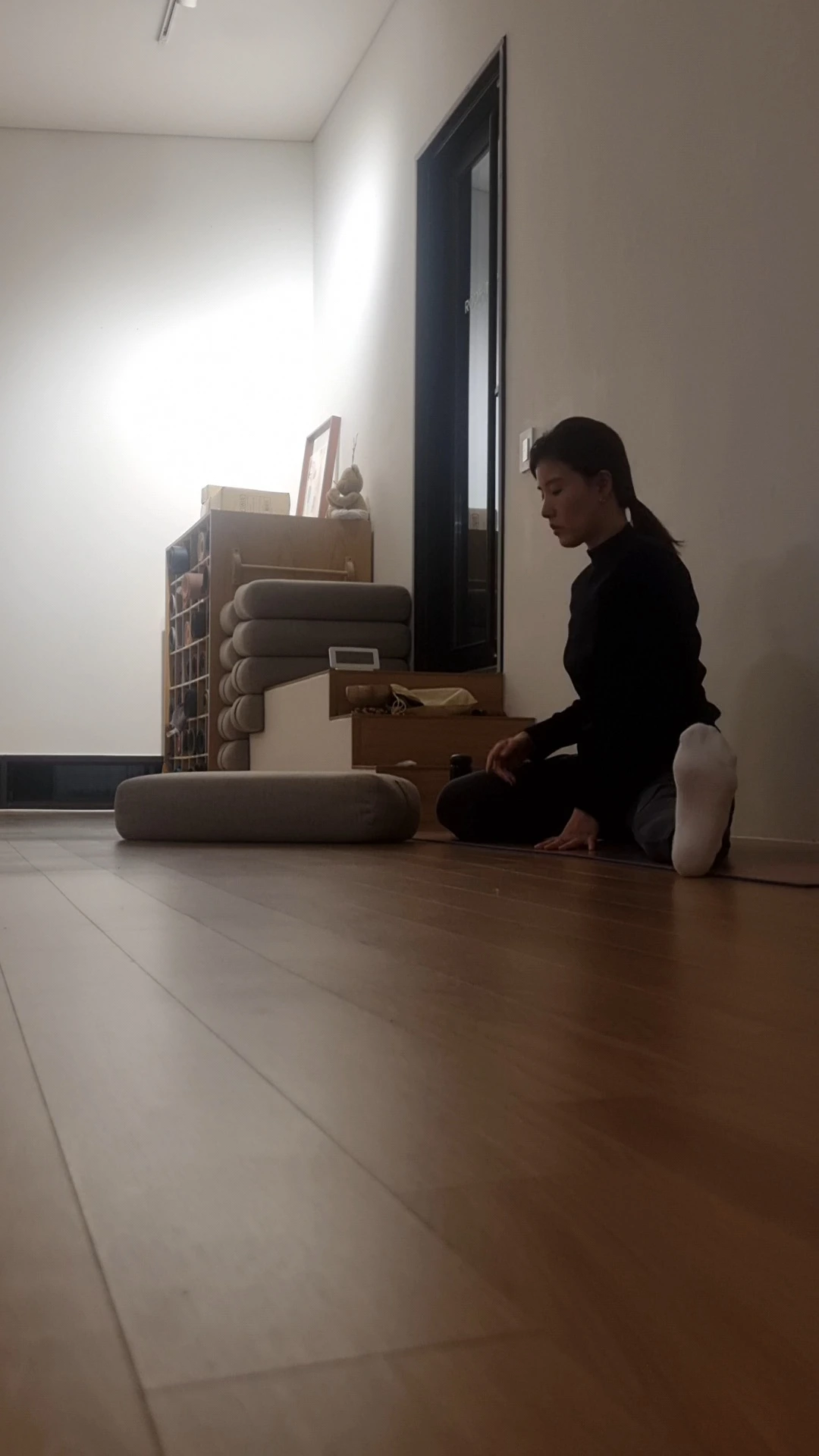 10분 정도 지났을까. 볼스터에 기대어 있는 재은 님에게 얼굴만 남겨두고 등 뒤에서 담요로 몸을 덮어준다. 양손으로 볼스터를 끌어안고 있으면, 갓난아기 시절 엄마 등에 기대 포대기에 싸여 잠들었을 때 이런 기분이었을까? 하는 생각을 한 적이 있다. 다리를 찢으며 편안할 수 있다니.