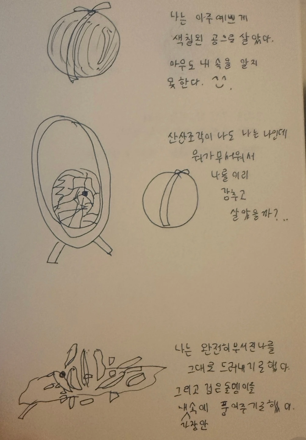 나는 아주 예쁘게 색칠된 공으로 살았다. 아무도 내 속을 알지 못한다