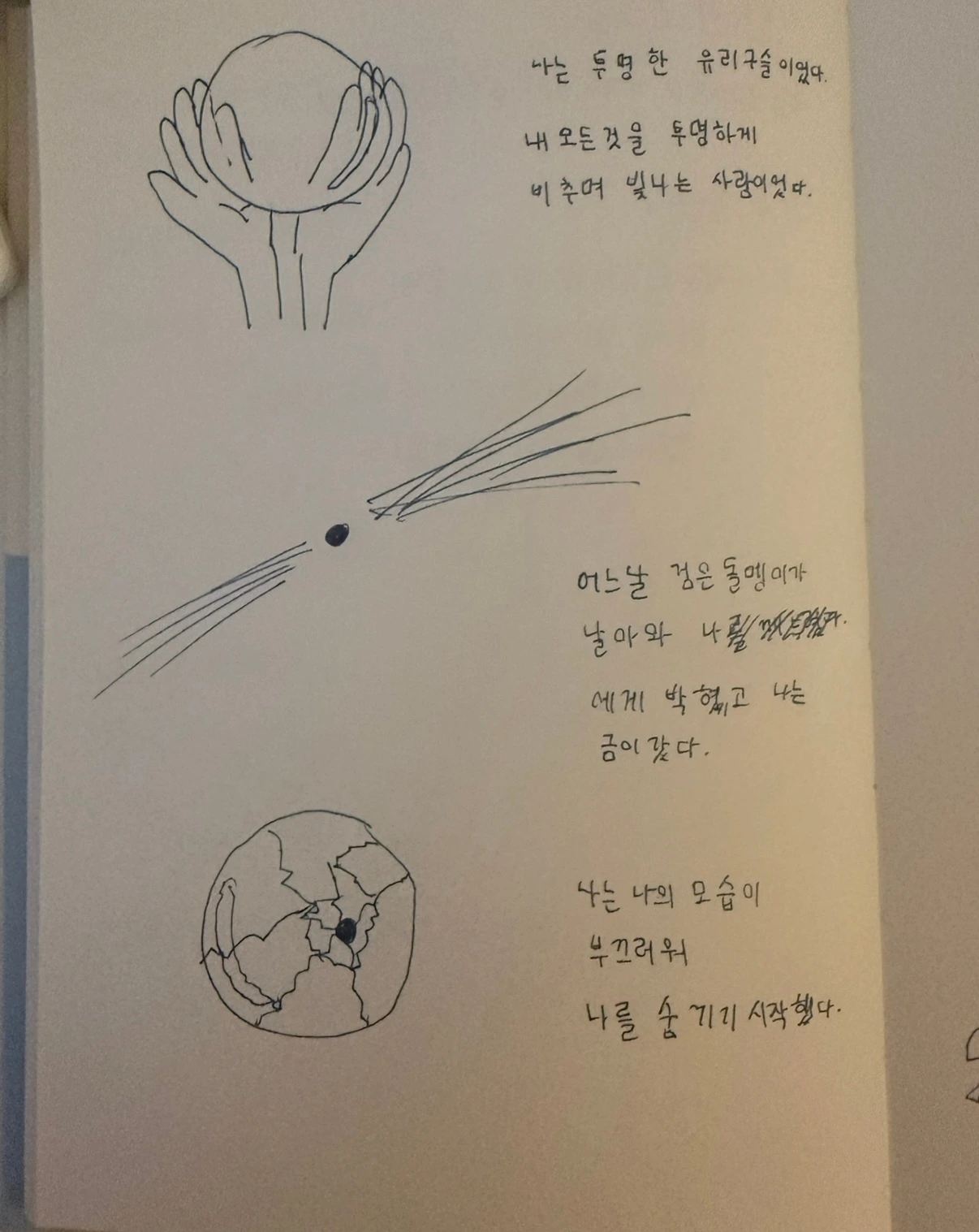 나는 투명한 유리구슬이었다. 내 모든 것을 투명하게 비추며 빛나는 사람이었다.