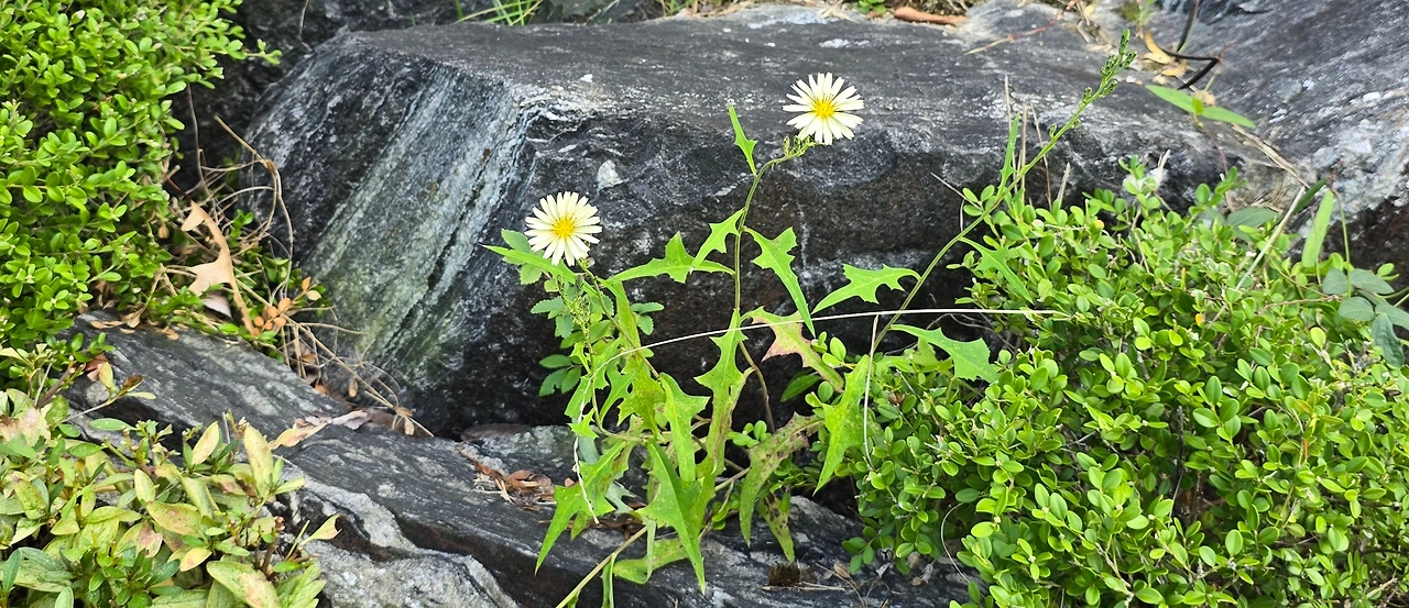 세 번째는 도시에서 왕고들빼기를 마주하는 일이다. 오래된 담벼락 옆, 돌 사이의 좁은 틈, 버려진 빈터처럼 척박한 땅과 좁은 틈새에서도 왕고들빼기는 자란다. 거친 환경에 적응하느라 덩치도 작달막하고 작은 꽃을 피우면서도 열매까지 맺으며 제 몫을 다한다. 바람이 스친 곳이라면 어디든 삶터로 삼는 강한 생명력을 발견하는 것, 왕고들빼기를 만나는 또 다른 즐거움이다.