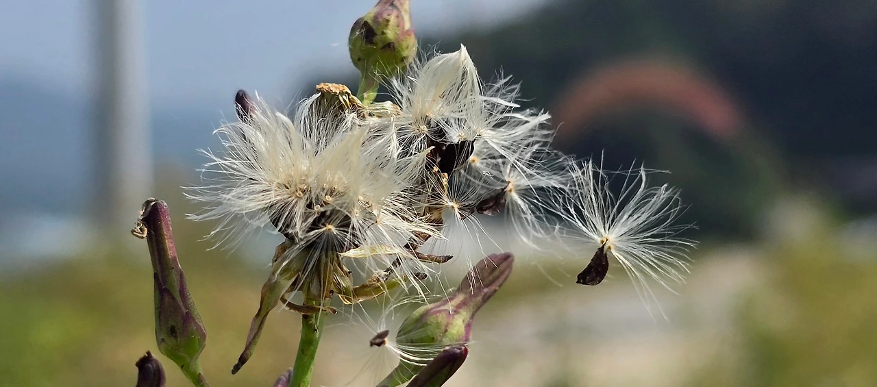 그렇게 여름에서 가을로 이어지는 동안 바람은 쉼 없이 왕고들빼기를 흔들고, 나비들은 바람 따라 거듭 꽃을 찾아다닌다. 바람과 나비가 다녀가면 이제 꽃들의 시간이다. 먼저 핀 꽃은 이내 열매를 맺어 씨앗이 여물어간다. 갓털(冠毛)을 단 씨앗은 가벼운 바람에도 하나둘 하늘로 떠오른다. 바람이 거세질 땐 줄기가 크게 휘청이면서 씨앗은 한꺼번에 흩날려 더 멀리 날아가기도 한다. 오후의 햇살이 더해지면 갓털은 은빛으로 반짝이며 풀밭을 밝힌다.