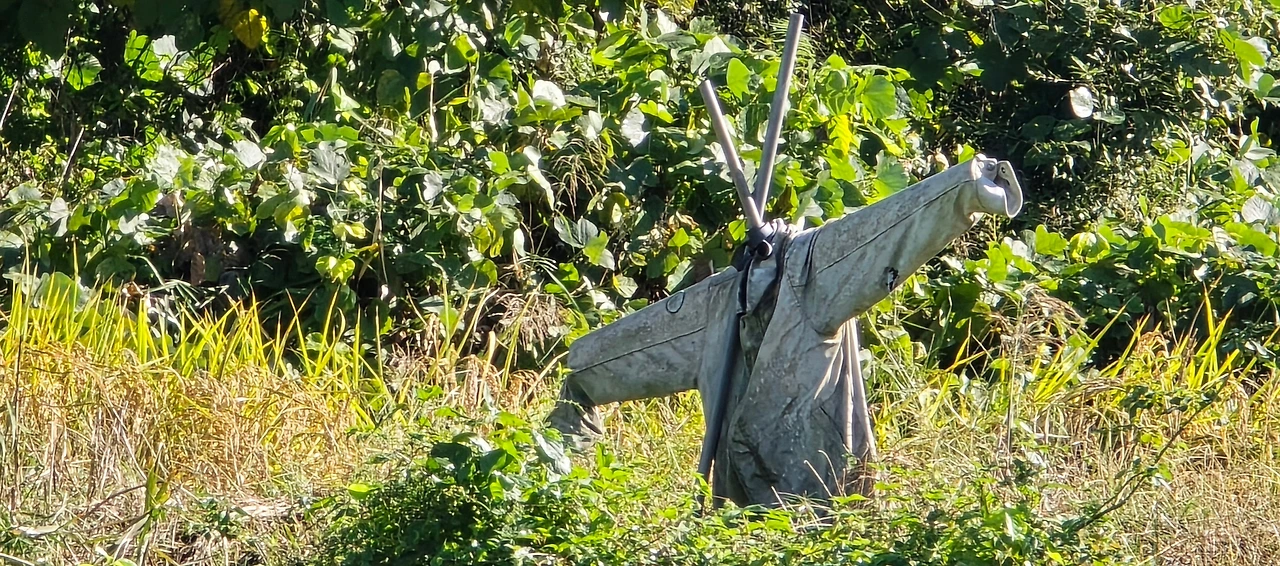 이미 벼를 수확한 논도 있고 많은 논에서는 여전히 벼가 여물어가고 있다. 물이 잘 빠지지 않은 논에는 비바람에 쓰러졌던 벼를 한 다발씩 묶어 세워 놓고 때를 기다리고 있다. 고개 숙인 이삭들이 바람의 움직임에 따라 가볍게 흔들릴 뿐 벌판엔 별다른 기척이 없다. 사람의 손길이 멈춘 자리마다 고요가 내려앉고, 들판 한가운데 낡은 옷을 걸친 허수아비가 외로이 서 있다. 바람에 힘없이 흔들리는 옷자락이 나를 향해 곧 해가 질 테니 돌아가라고 작별 인사를 하는 듯하다. 그리고는 아무렇지 않다는 듯 그대로 서 있다. 어제 밤에도 혼자였다면서.