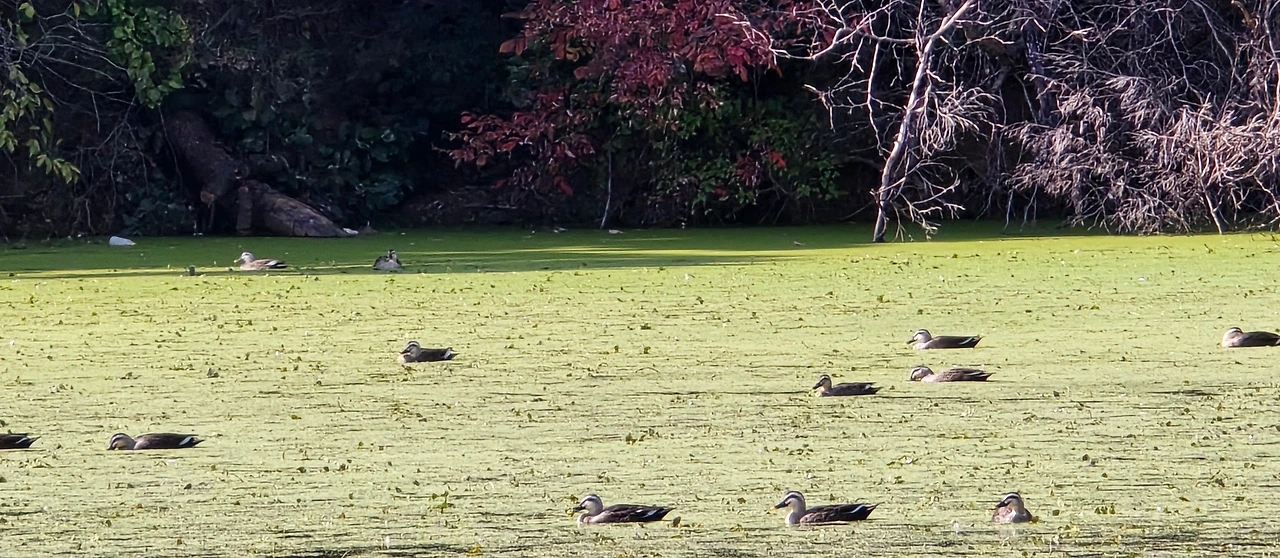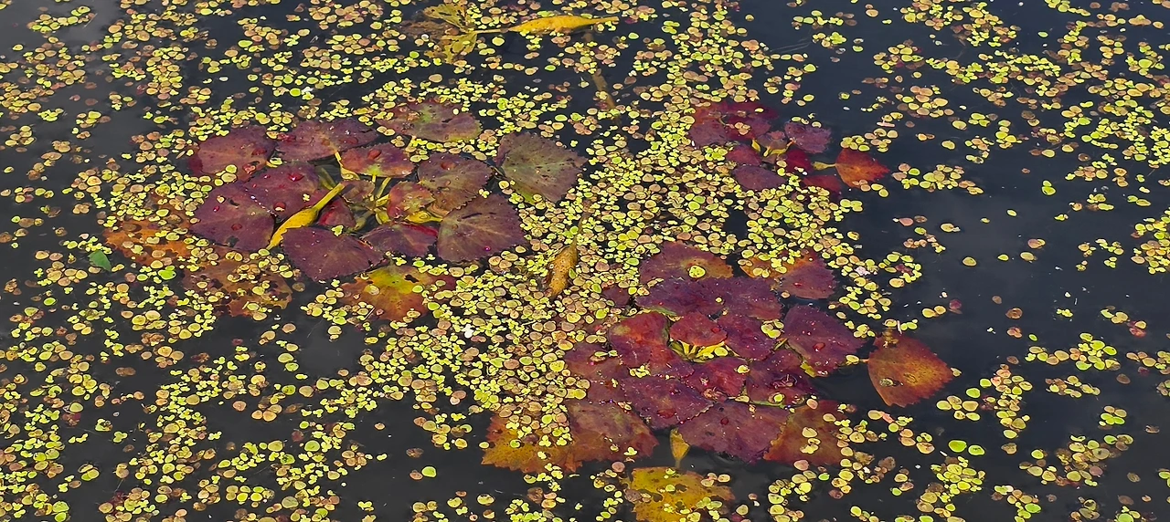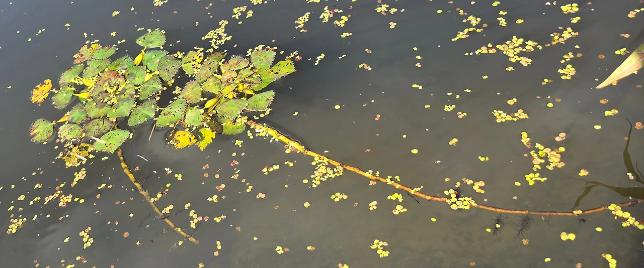 두 번째로 들른 저수지에서 물 위를 넓게 덮은 식물이 눈에 들어왔다. 사고 예방을 위해 둘러쳐 놓은 철제 울타리가 조급해진 발길을 막아섰다. 오랜만에 만났고 반가워 그냥 돌아서지 못하고 기어이 울타리를 넘었다. 둑을 따라 내려가 확인하니 마름과 개구리밥이었다. 미리 도감을 살펴본 덕분에 바로 알아볼 수 있었다.
