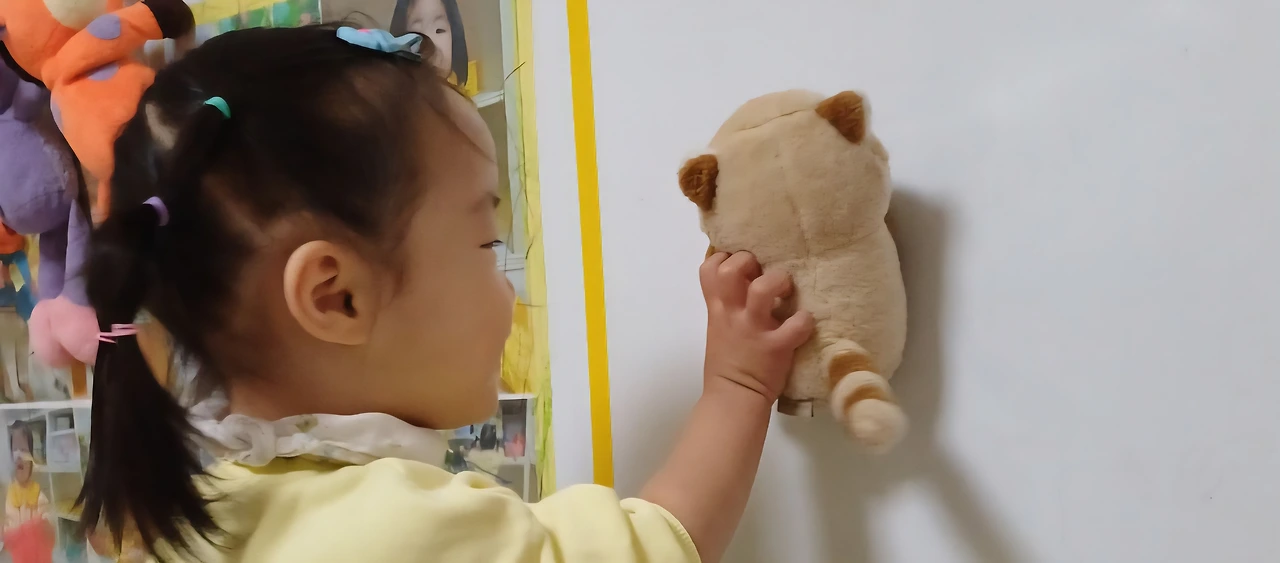 그랬던 그녀가 어느 날 달라졌다. 한 달쯤 전에 독감으로 엄마와 잠시 떨어져 외갓집에 다시 와서 지낼 때였다. 무엇이 눈에 끌렸는지 정확히 모르겠지만 그날은 그동안 한 번도 고르지 않았던 작은 너구리 인형을 손에 넣었다. 그때 손녀는 몸살로 기운이 없었고 무엇보다 늘 곁에 있던 엄마가 함께하지 못하는 시간을 보내고 있었다. 말로 표현하지 못했을 뿐 어린 마음 안에는 분명 빈자리가 있었을 것이다. 대신 기댈 무언가가 간절했고 아마도 그 작은 너구리 인형이 빈틈을 채워주는 존재이지 않았을까. 아픈 몸이 나아지는 동안, 엄마를 기다리는 동안 함께 해준 인형에 애착이 형성된 듯싶다.