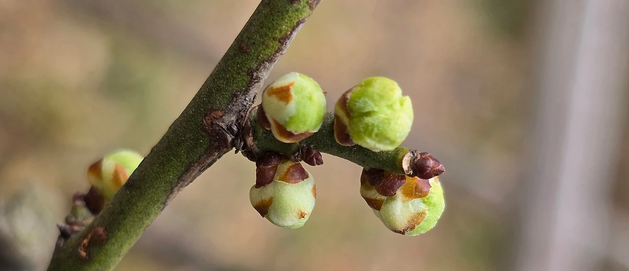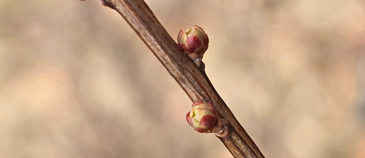 작년 이른 봄에 가장 일찍 꽃 소식을 전해주었던 매실나무를 찾아간다. 아파트 단지에서 나무 위치를 찾아가는 일은 이제 어렵지 않다. 조팝나무보다 한 걸음 앞서 비늘조각을 열어두고 있다. 벌어진 틈 사이로 보이는 꽃받침의 색깔이 선명하다. 어떤 나무는 발그레한 붉은빛을 띠고 이웃한 다른 그루는 싱그러운 초록빛을 머금었다. 머지않았다. 몇 차례 봄바람이 가지를 스치면 품고 있던 색깔대로 매화가 피겠다. 진한 매화향을 따라 벌도 하나둘 찾아들겠지.