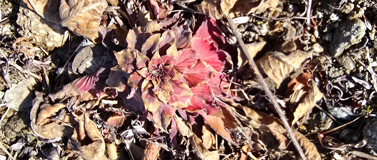 까치가 날아가 버린 소나무를 지나 아파트 단지 밖으로 나가본다. 울타리 삼아 심어진 회양목과 사철나무, 영산홍은 잎에 여전히 붉은빛을 남겨두고 있다. 얼굴이 빨개지도록 견뎌온 지난겨울의 모진 바람을 짐작해 본다. 겨울에 잎이 붉게 변하는 것은 자외선과 냉해를 막아내기 위한 이들 나름의 생존 방식이다. 땅에 바짝 붙어있는 달맞이꽃도 잎이 여전히 붉다. 살얼음과 꽃샘추위가 한두 번 더 찾아올 것을 알기에 붉은 옷을 입은 채 서두르지 않는다.