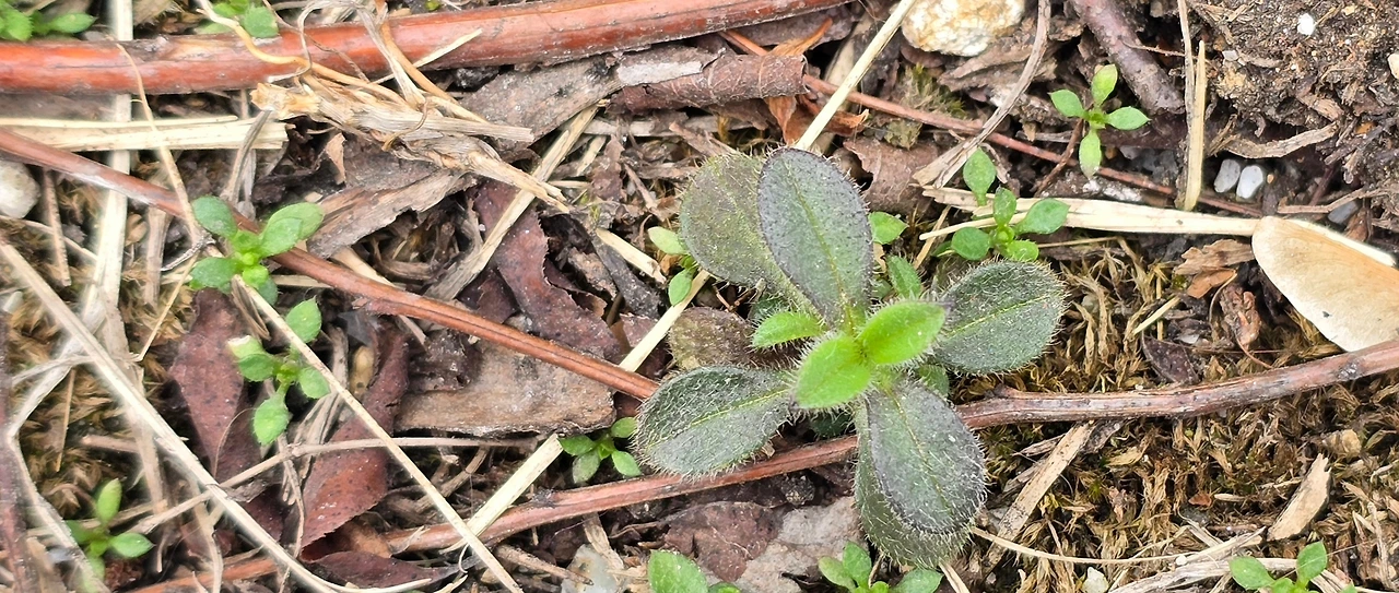 까치의 경계심을 자극할 셈으로 둥지가 있는 소나무 가까이에 다가선다. 나무 밑동 주변에는 까치가 둥지를 쌓다 떨어뜨린 마른 나뭇가지가 흩어져 있다. 그 잔해 사이로 유럽점나도나물의 어린잎이 제법 푸릇푸릇하다. 토끼풀과 새완두도 지금은 추위의 기세에 눌려 움츠리고 있으나 까치가 둥지를 마무리할 무렵이면 잎은 더 짙어지고 줄기는 왕성하게 뻗어갈 것이다.