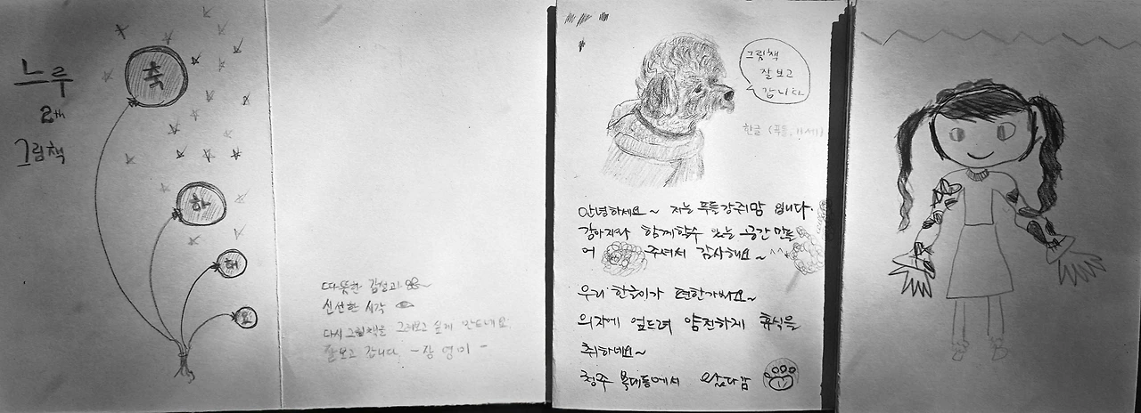 서툰 사람들이 만든 거친 책이지만 ISBN 식별번호가 찍힌 어엿한 책이기도 했다. 모든 과정을 이끌고 표지디자인과 머리말까지 맡아준 동아리장이 있어 책 모습을 갖추게 되었다. 전시장에서 이 책을 가져가려 한 사람이 있었다는 후일담을 듣고 가치를 인정해 준 그가 고맙게 느껴지기도 했다. 제본된 책을 받은 것으로 긴 여정이 끝나는가 싶었으나 전시회를 하자는 제안으로 다시 들썩였다. 그림책을 만드는 것도 처음이었지만 전시회를 여는 것도 생소해서 호기심과 흥미가 생겼다.