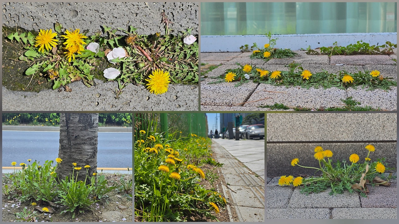 같은 보도블록 틈이라도 사람의 발길이 미치지 않는 곳에서는 거침이 없었다. 허리를 꼿꼿이 세우고 클 수 있을 만큼 키를 키웠다. 보도블록 사이에서 스스로 몸을 낮추고 있던 녀석들과 달리 긴 꽃줄기가 봄바람에 한들거렸다. 어딘가 여유로워 보이기까지 했다. 도심 도로변에 똑같이 뿌리를 내렸음에도 한 발짝 차이로 나뉜 환경이 이토록 다른 삶의 모양새를 만들어냈다.