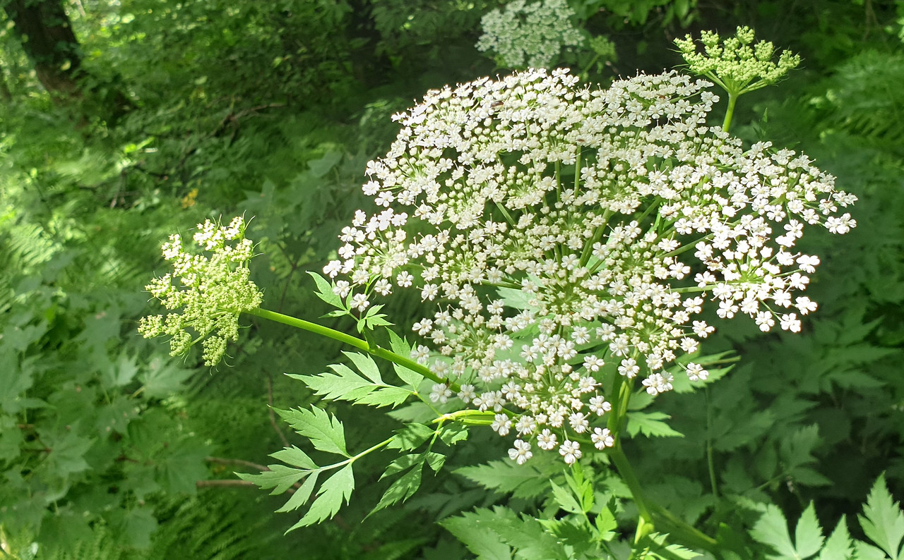 바닷가나 밭처럼 보이는 평지에서도 자주 보던 꽃이 여기 등산로 주변에도 흔하다. 이름이 궁금했다. 미나리과 식물은 잎과 꽃이 비슷하고 종류도 많아 구별이 쉽지 않아 갑갑할 지경이다. 도감과 인터넷 검색으로 알아보니 섬바디다. 꺾으니 줄기 안쪽은 비어있고 하얀 액이 나온다. 울릉도에서는 돼지가 좋아해 돼지풀이라 부르며 소먹이로도 쓰여 한때 인기 있는 목초였단다.