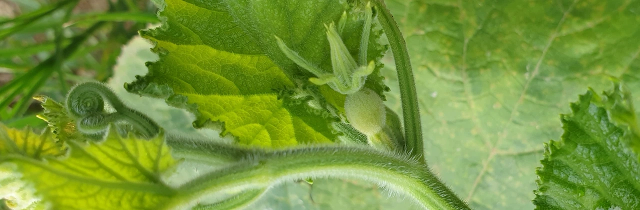 호박꽃은 암꽃보다 수꽃이 많다. 암꽃이 많이 피게 하려면 단일저온처리를 한단다. 호박은 낮의 길이가 일정시간(임계일장) 이하가 되어야 꽃이 피거나 촉진되는 단일식물이므로, 일조시간을 일정시간 이하(밤 시간을 일정 이상)로 유지되어야 한다. 또한 기온도 일정 온도 이하로 유지되어야 암꽃 착생이 촉진된단다. 텃밭에서야 꽃이 피는 대로, 호박이 열리는 대로 받아들이지만 전문 시설 농가라면 수확량을 높이기 위해 필요한 작업이겠다.