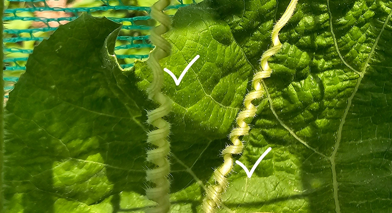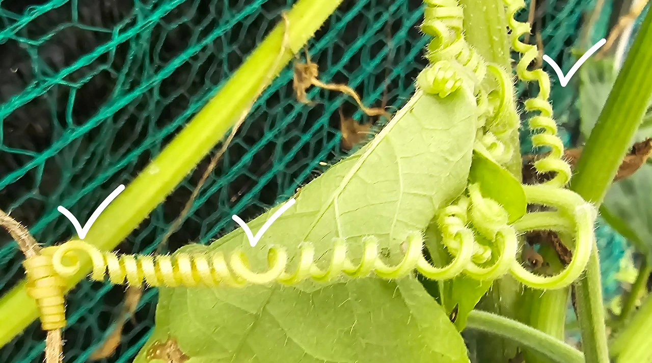 덩굴손이 감기는 원리에 대한 전문가의 글이 있어 정리하여 옮겨 적어 본다. 절반은 시계방향으로 나머지는 시계반대방향으로 감기면서 덩굴손이 팽팽해지는데, 마치 전화 수화기선이 방향을 바꿔가며 꼬이며 팽팽해지는 모습과 같다. 그리고 덩굴손이 물체를 잡으면 목질화가 시작되고 두 층으로 된 세포층의 목질화 정도 차이로 나선을 이루게 되는데, 목질화가 많이 된 층이 덜 된 층보다 더 많이 수축하면서 나선을 이룬다고 한다. <동아사이언스 연재 ‘강석기의 과학카페 95’ 참고>. 과학자들의 연구 덕분에 인터넷 검색만으로 덩굴손이 꼬이는 원리를 알게 되었다. 앞으로 호박을 보면 꽃이나 열매보다 덩굴손을 먼저 찾아볼 수밖에 없다.