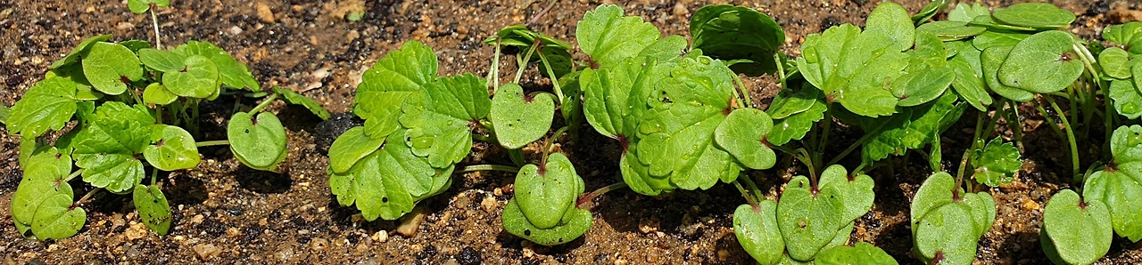 씨앗에서 막 올라온 새싹은 언제나 귀엽기 마련인데 아욱 새싹은 예쁘고 사랑스럽기까지 하다. 떡잎과 이어서 나오는 본잎의 모양은 심장형(하트 모양의 넓적한 형상)으로 같다. 그러나 잎 가장자리의 모양은 조금 다른데, 떡잎은 매끈한데 본잎은 물결모양으로 파여 부드러운 곡선을 이룬다. 어린잎에도 잎맥이 뚜렷하게 나타난다. 이런 아욱의 새싹을 보고 있으면 왜 심장 모양이 사랑을 의미하는지 짐작 간다.
