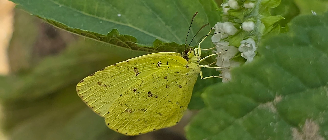 <위부터, 줄점팔랑나비, 남방노랑나비, 배짧은꽃등에, 등검은말벌, 황띠배벌, 어리호박벌>