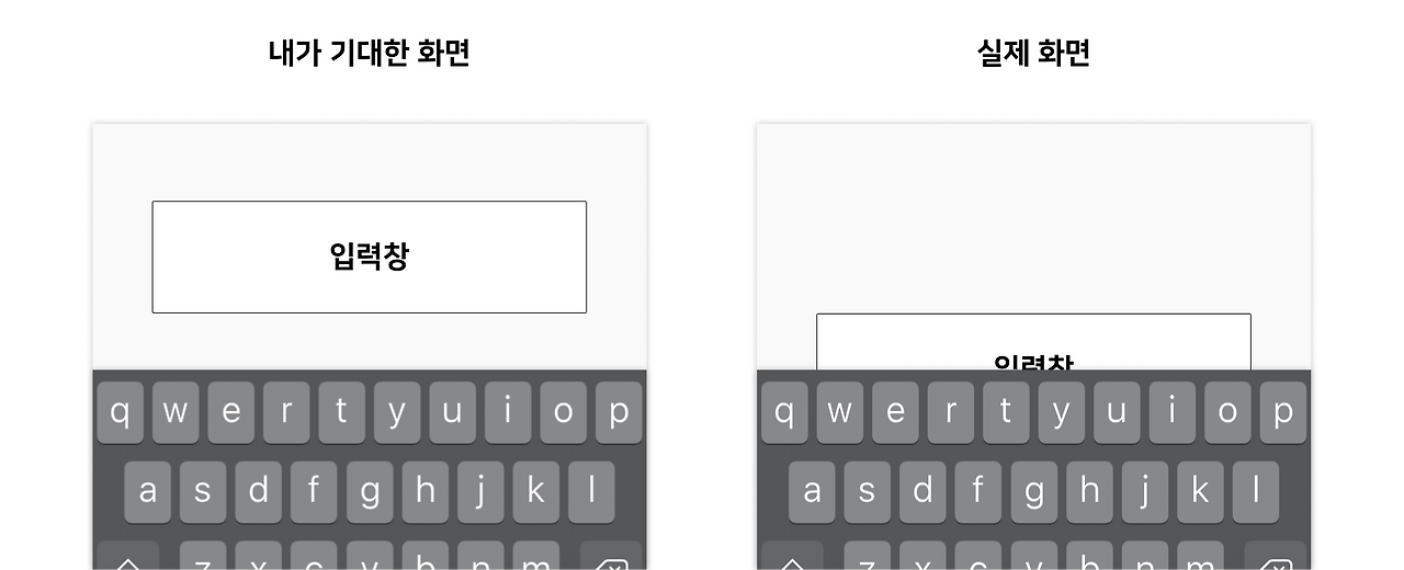 나는 가상 키보드가 올라오면 자연스레 입력창도 위로 밀려날 것이라 생각했다. 실제로 안드로이드 폰에선 그랬다. 입력창을 누르면 가상 키보드가 올라온 만큼 입력 폼이 위로 올라갔다. 그런데 아이폰에서는 그렇지 않았다. 가상 키보드가 화면 중간의 입력창을 가려 뭔가를 입력하더라도 뭐가 입력됐는지 확인하기 어려웠다.