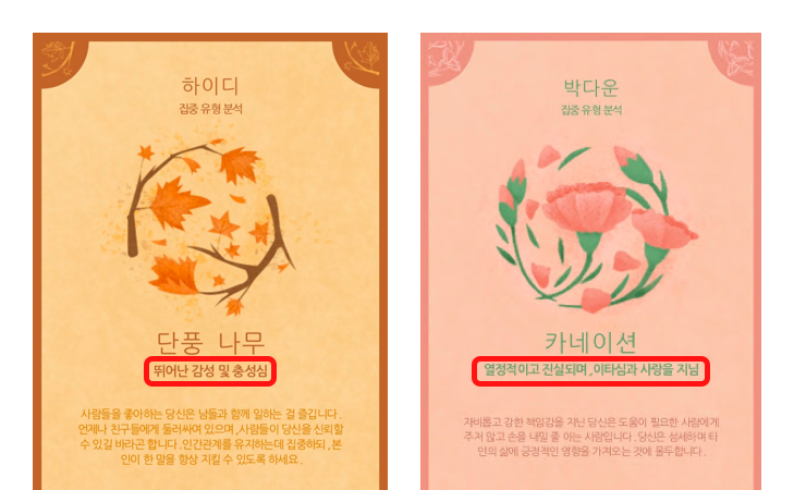 그래서 우리가 컨셉을 형성할 때 참고했던 여러 심리 테스트들을 다시 살펴봤다.