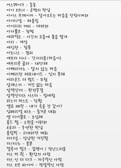 포레스트에서 제공한 짧은 꽃말처럼 칵테일도 그런 게 있지 않을까 찾아봤다. 살펴보니 '칵테일말'이라는 게 없는 것 같지는 않았다. 트위터에선 이런 것도 찾을 수 있었다.