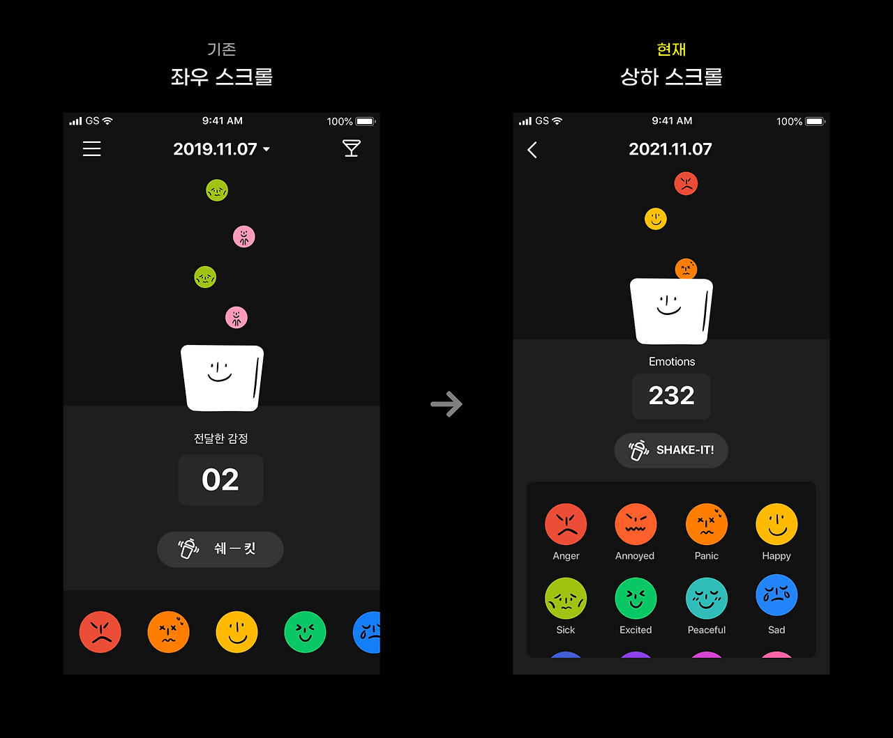이를 통해 사용자가 더 많은 감정을 한 번에 확인할 수 있게 되어 스크롤 횟수도 줄어들 것으로 보인다.