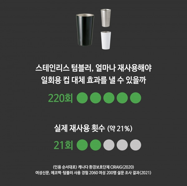앞서서 텀블러 사용이 다른 환경보호 실천에 비해 나은 실천 조건을 갖고 있다고 말했지만 그건 어디까지나 상대적인 얘기였다.