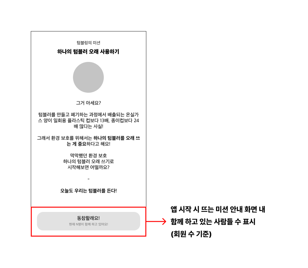 방법은 두 곳과 유사하게 가져가고자 했다. 텀블러를 사용한 사람들을 모아서 함께 보여 주는 식이었다. 함께 하여 어느 정도의 효과를 냈는지 수치적으로 보여 주는 것도 포함하였다.