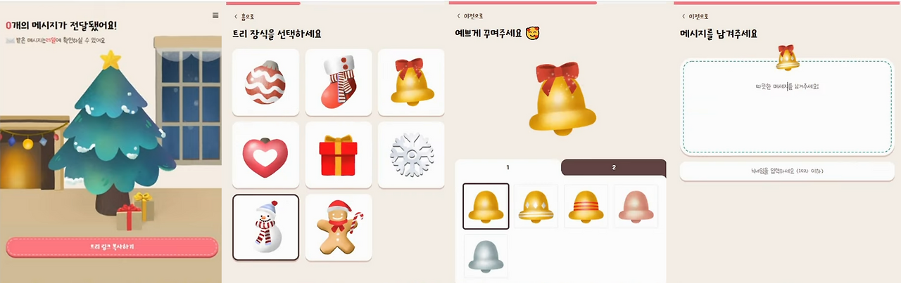 그래서 '내 트리를 꾸며줘'를 비롯해 다양한 유사 서비스를 살폈다. 어떤 포인트가 있어야 바이럴이 더 잘 될지 고민하며..