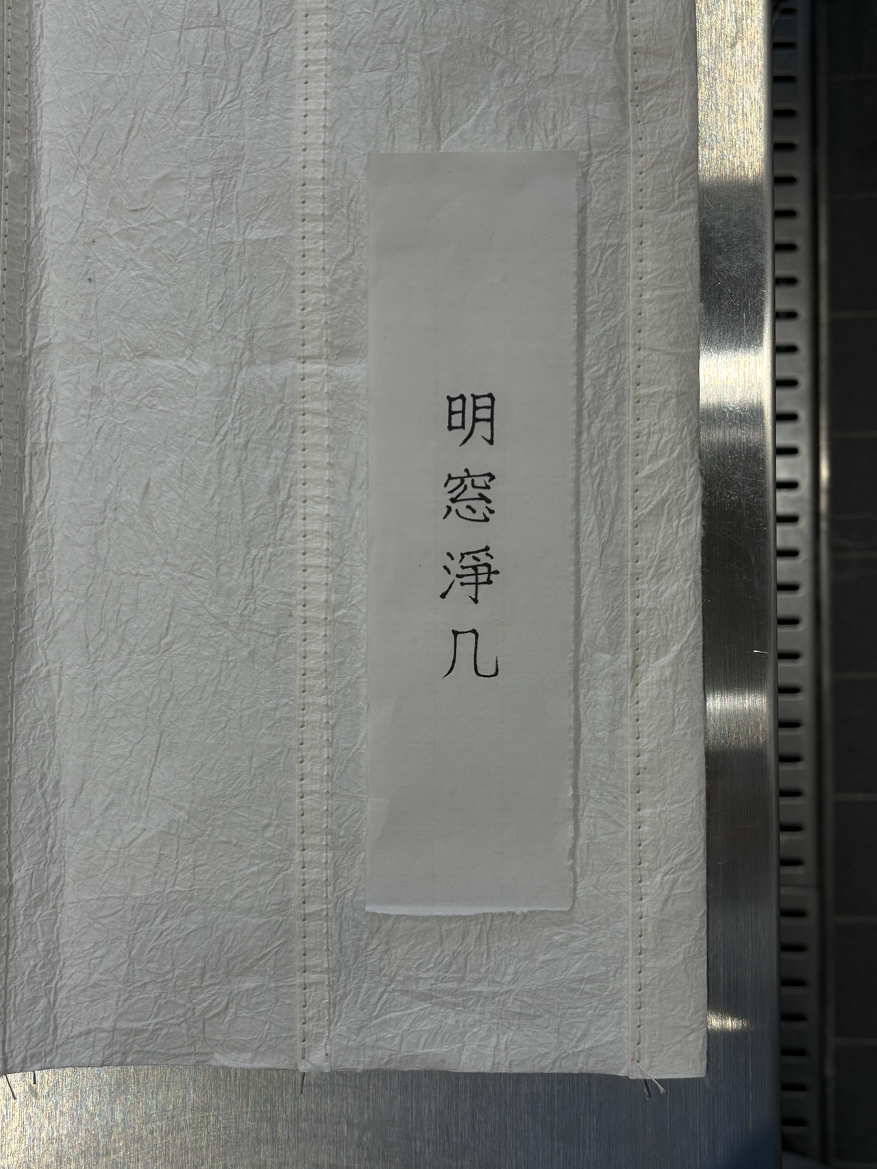 소미 작가 님은 화선지를 한지 블라인드에 붙이는, 이른바 배접 작업이 실패할 수 있어 여분의 서예를 요청하셨다. 주어진 작업 시간이 일주일 안팎이었기에 하선 작가에게 부담이 될 수 있었다.