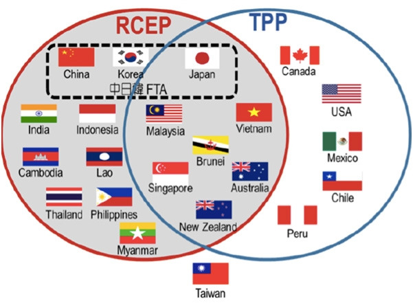 그리고 이렇게 지지부진하던 초창기의 RCEP에게 치명타를 날리는 사건이 발생했는데 바로 미국 주도의 TPP(환태평양 경제 동반자 협정) 타결이었다.