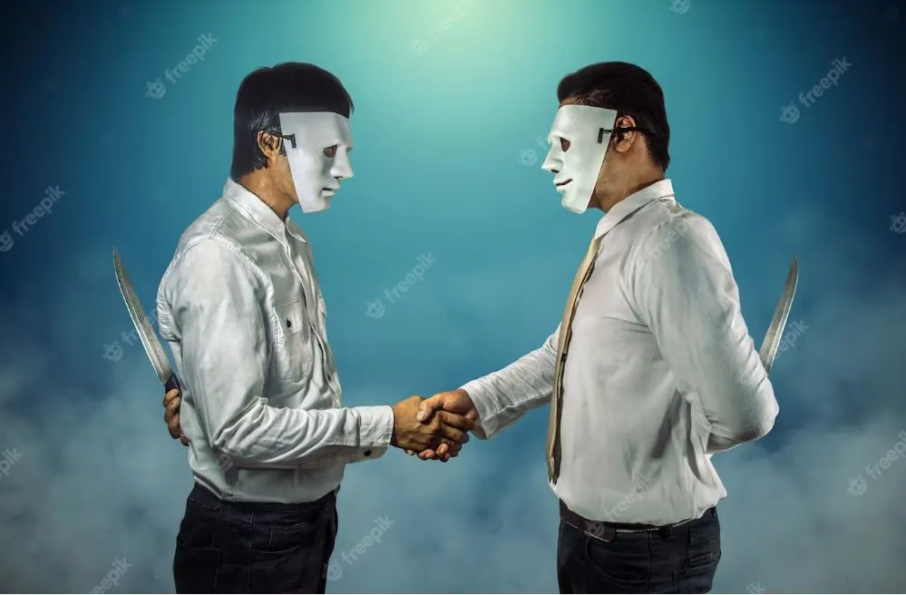 사진 2. 악수하면서 등 뒤에 칼을 숨긴 사람들. 출처: 구글 검색